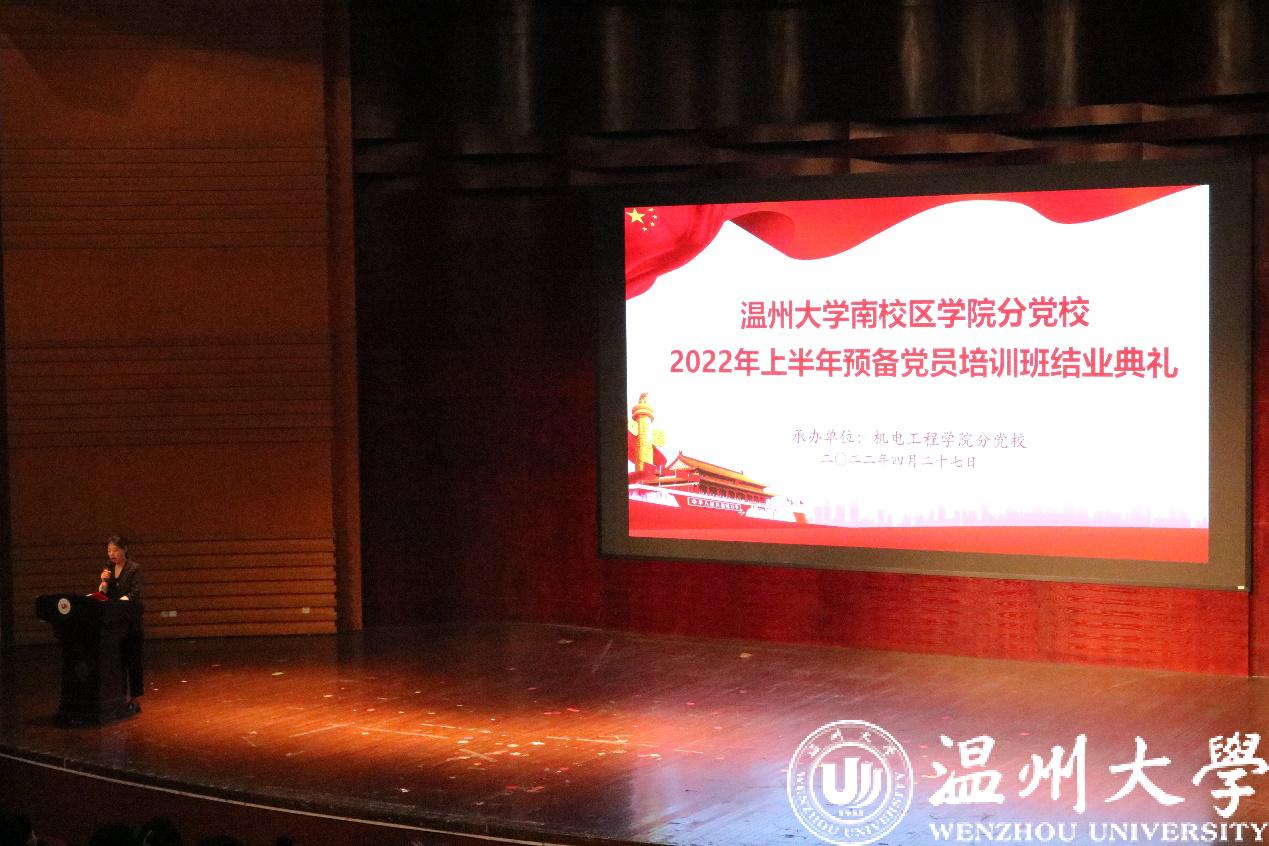 温州大学2022年上半年南校区预备党员培训班(联合)的各项工作接近尾声,为及时总结经验,表彰先进,2022年4月27日下午,分党校于南校音乐厅举办结业典礼。开云体育 党委副书记、分党校副校长黄玮老师,美术与设计学院党委副书记、分党校副校长叶如芳老师,开云体育 学工办主任杨奇老师以及本次培训的358名预备党员出席本次结业典礼。