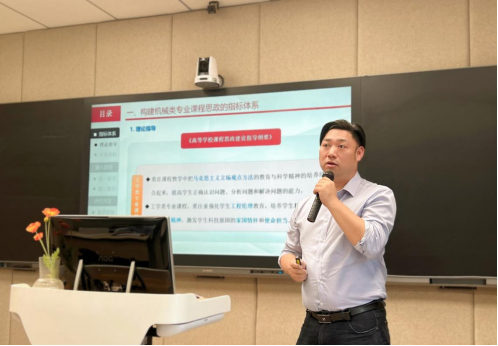 姜锐老师从课程思政的实施背景、实施基本要求、课程思政育人模式等三方面做了题为“机械类专业课程思政实施与评价”的主题发言,全面介绍了开云体育 构建的第一第二课堂联动“知识传授、能力培养、价值引领”三位一体的课程思政育人模式,详细阐述了学院在课程思政融入路径、课程思政教学评价等方面的具体做法,深入解读了构建机械类专业课程思政指标体系的理论逻辑和实践依据,总结了课程思政实施的三大要点:关键在教师、重点在融入、难点在评价。