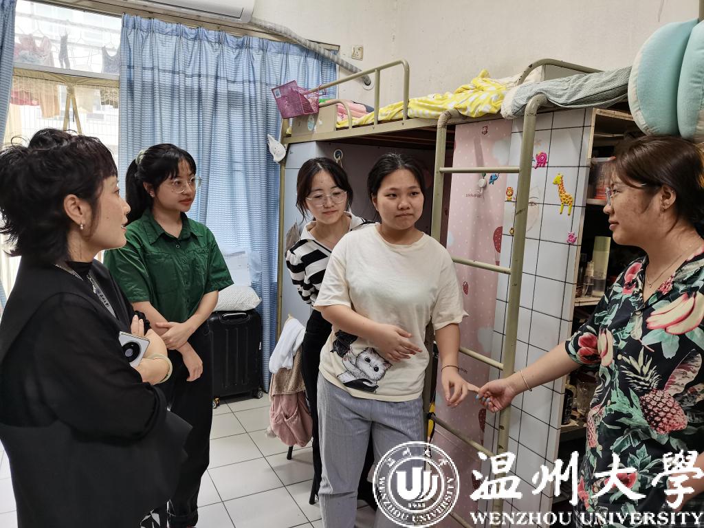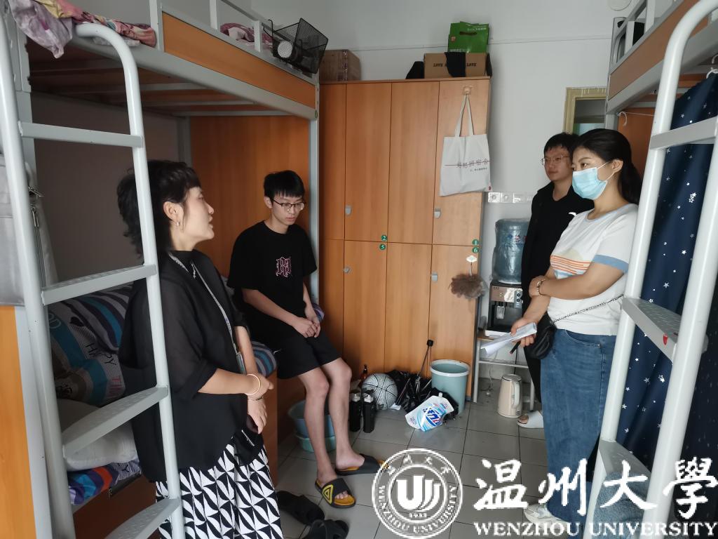 为确保毕业生顺利离校,6月10日下午,开云体育 开展2022届本科毕业生寝室走访活动,学院党委副书记黄玮与毕业生辅导员徐欢、史凤娟参与了本次走访。
