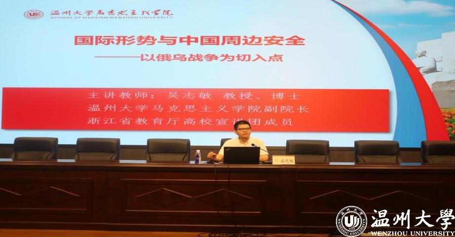 6月9日,开云体育 邀请马克思主义学院副院长吴志敏教授为21级本科生做了主题为《国际形势与中国周边安全——以俄乌战争为切入点》的讲座。