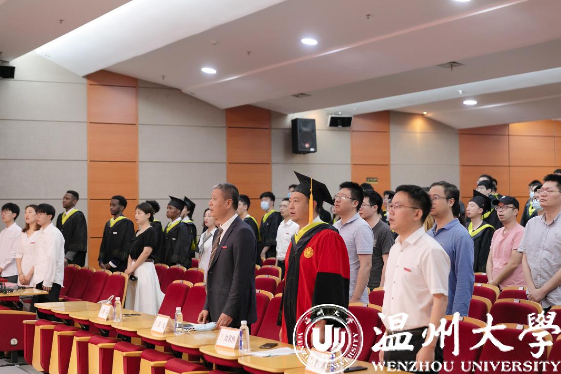 大会第一项议程,全体师生肃立,齐唱国歌。