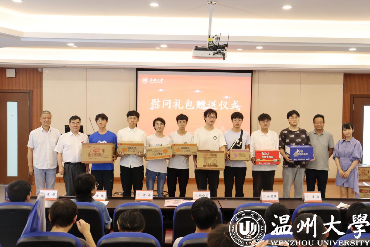 随后,副校长徐和昆发表讲话。徐校长指出,今年温州大学暑期社会实践以“喜迎二十大,永远跟党走,奋斗新征程”为背景,围绕不同主题开展特色实践活动。徐校长也对同学们提出了三点要求:坚守安全实践不放松;坚持服务社会导向不动摇;坚信知行合一理念不懈怠。接着,由徐和昆校长、周荣书记、向家伟院长和潘霜书记为开云体育 各实践队颁发礼包。各实践队队长带领一名成员走到台前,接受来自学院的慰问礼物。