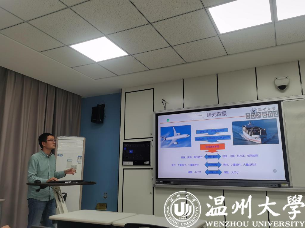 经主持人一番开场白后,首先由张斌斌博士做报告,题目为海洋工程装备用钛合金及其服役行为。张斌斌博士长期从事高端装备用钛合金材料的研究工作,简明扼要的阐述了海洋工程装备上所用的材料及加工,应用前景。简述了实验的内容与实验方法,报告过程中还与其他老师交流互动。