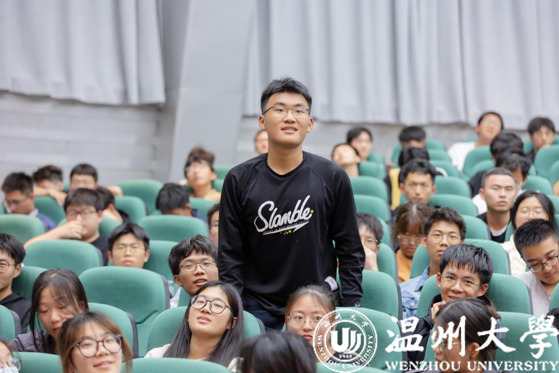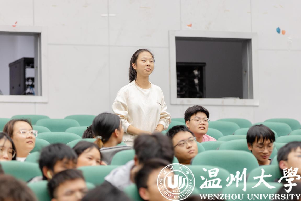 温州大学学习标兵周洁作报告。周洁同学从自身的学习竞赛经验展开,告诉学弟学妹们要有“人难我不难,人易我不大意”的想法,认真对待每一次竞赛的锻炼机会,从中得到进步。