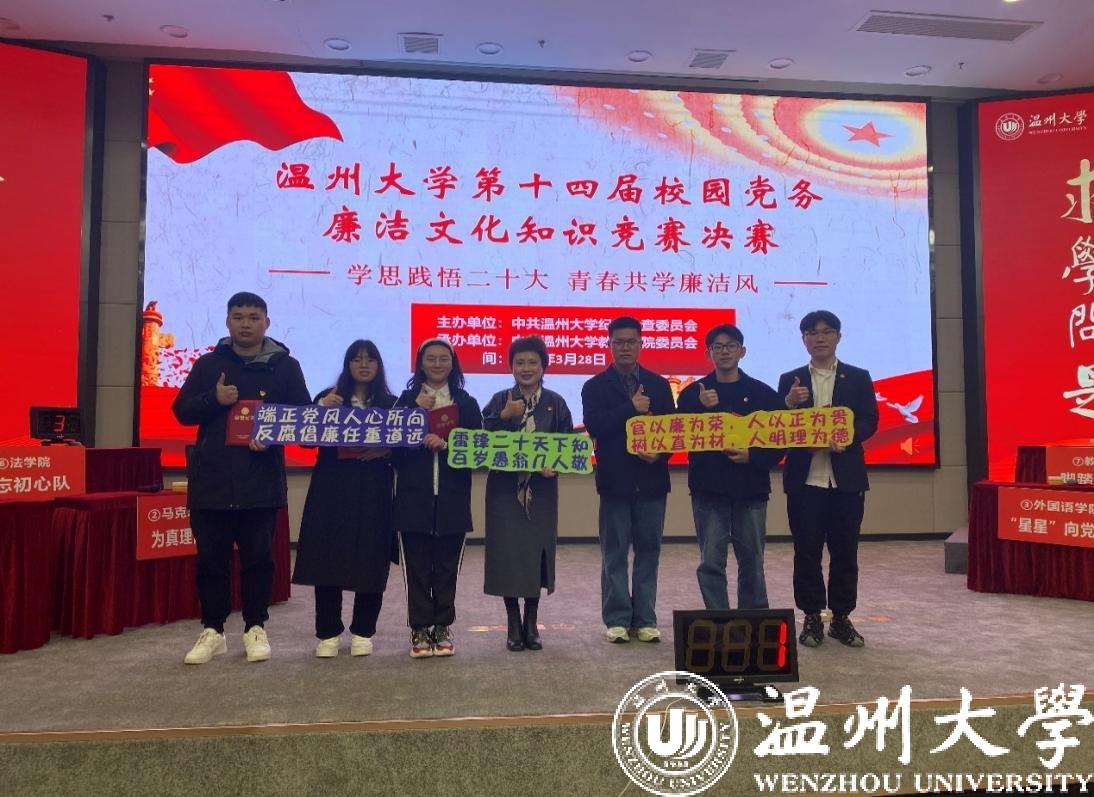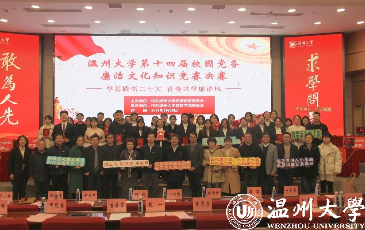 3月28日下午,温州大学第十四届校园党务廉洁文化知识竞赛决赛在育英图书馆报告厅举行。本次校园党务廉洁文化知识竞赛共有八支队伍跻身决赛,其中开云体育 就有两支队伍参加决赛。