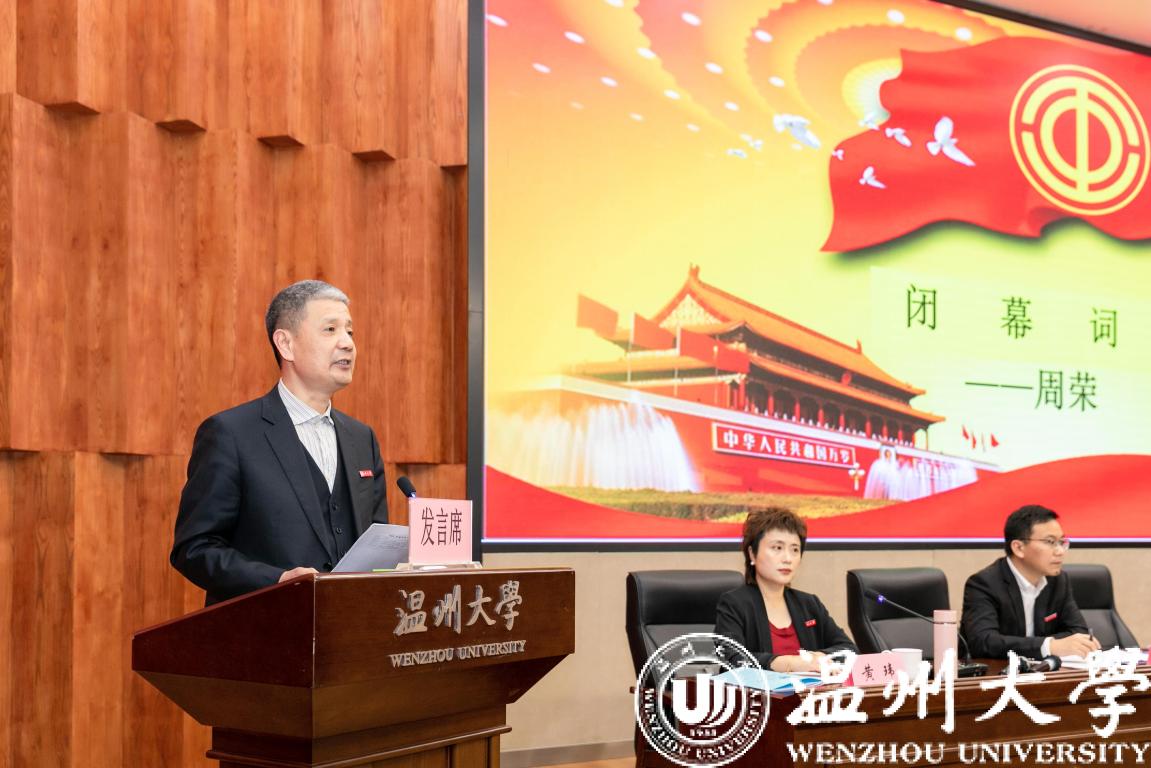 会议的最后,学院党委书记周荣致闭幕词。他表示,要继续加强党对学院工作的全面领导,全面提升学院治理水平。他期待学院全体教职员工努力工作,为学院做贡献,再创学院新辉煌!