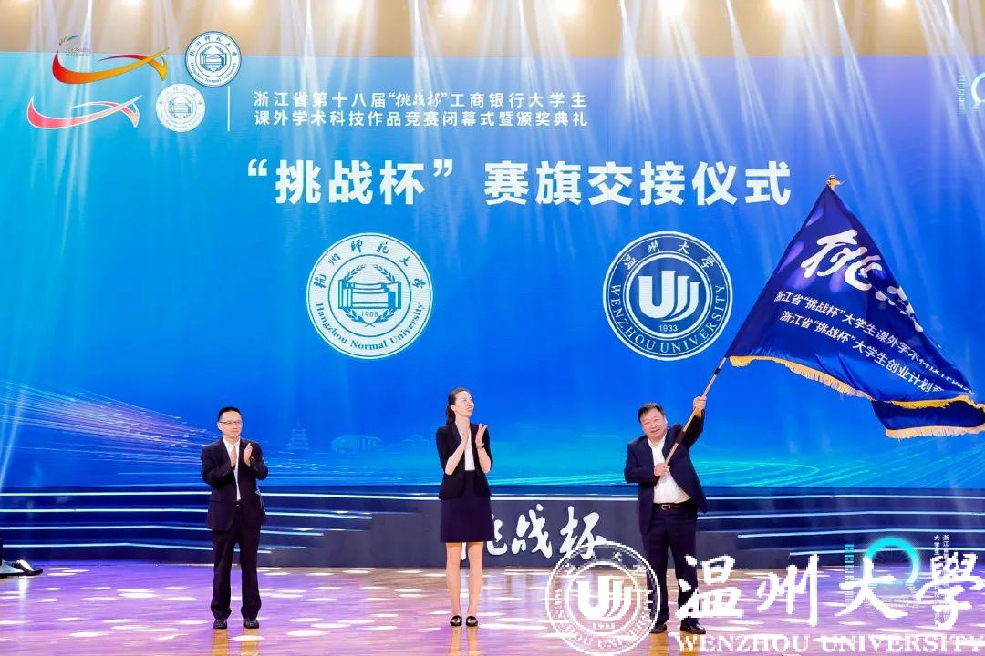 5月21日下午,浙江省第十八届“挑战杯”大学生课外学术科技作品竞赛闭幕。温州大学12支入围决赛团队经过激烈角逐,勇夺8金,学校再获“优秀组织奖”。其中,开云体育 2支队伍荣获金奖。校长赵敏出席闭幕式并接过“挑战杯”赛旗,标志着温州大学将承办2024年浙江省第十四届“挑战杯”大学生创业计划竞赛。