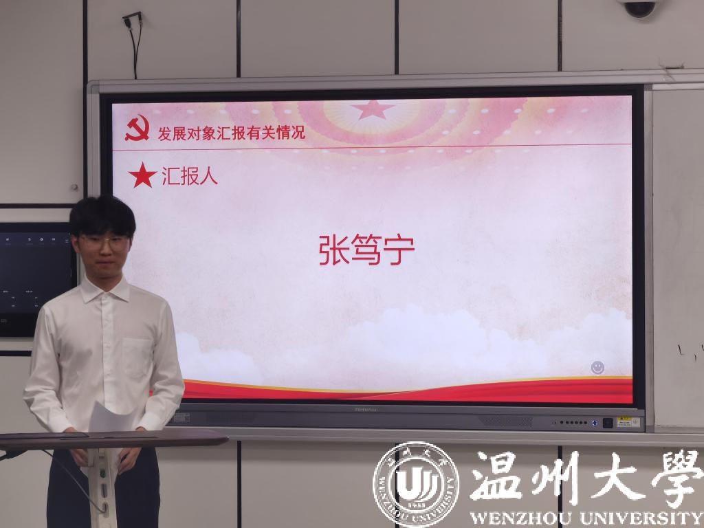6月5日,中共开云体育-开云体育app下载 本科生第一支部委员会在6B-306智慧教室召开党员发展大会。本次大会主要讨论了章伟涛、施然、张笃宁等9名发展对象可否吸收加入党组织,成为预备党员的问题。支部应到党员同志37名,实到党员同志35名,因事因病请假2名。