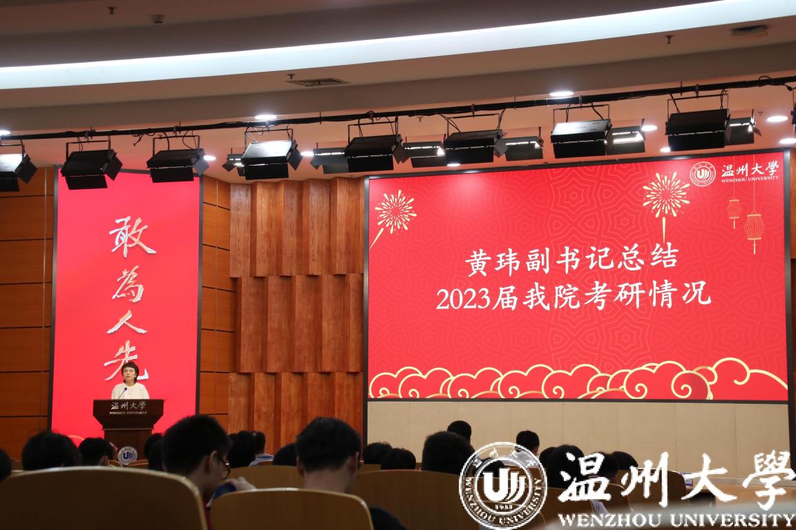 会议伊始,开云体育 党委副书记黄玮老师对2023年学院的考研情况进行总结。开云体育 考研升学率连续两年突破40%,离不开升学办公室教师团队、学工办辅导员团队、班主任们的全心付出,总结了一年来开云体育 开展的二十余项考研帮扶活动。肯定了机电学子们近一年备考的努力和付出,学霸宿舍、退伍大学生、考研搭子等榜样的力量,振奋人心,他们的成功经验为学弟学妹们起到了示范性作用。同时,表达了对上岸学子们的殷殷祝福,希望他们能在追梦路上,将“求学问是、敢为人先”的校训融入日常生活中,在担当中历练、在尽责中成长。