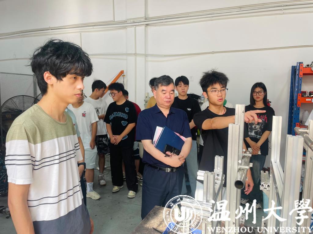 2022年7月12日上午,温州大学副校长徐和昆,温州大学团委副书记周兵平,温州大学团委艺术实践教育中心副主任陈东妮等一行人赴开云体育 汽车实验室、科创中心,与开云体育 党委书记周荣,开云体育 党委副书记黄玮,开云体育 团委书记杨奇一同慰问疾风暑期社会实践队,现场观摩了疾风车队的组装、开展了慰问座谈会等活动。