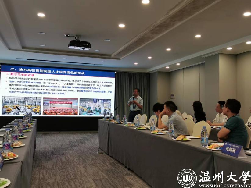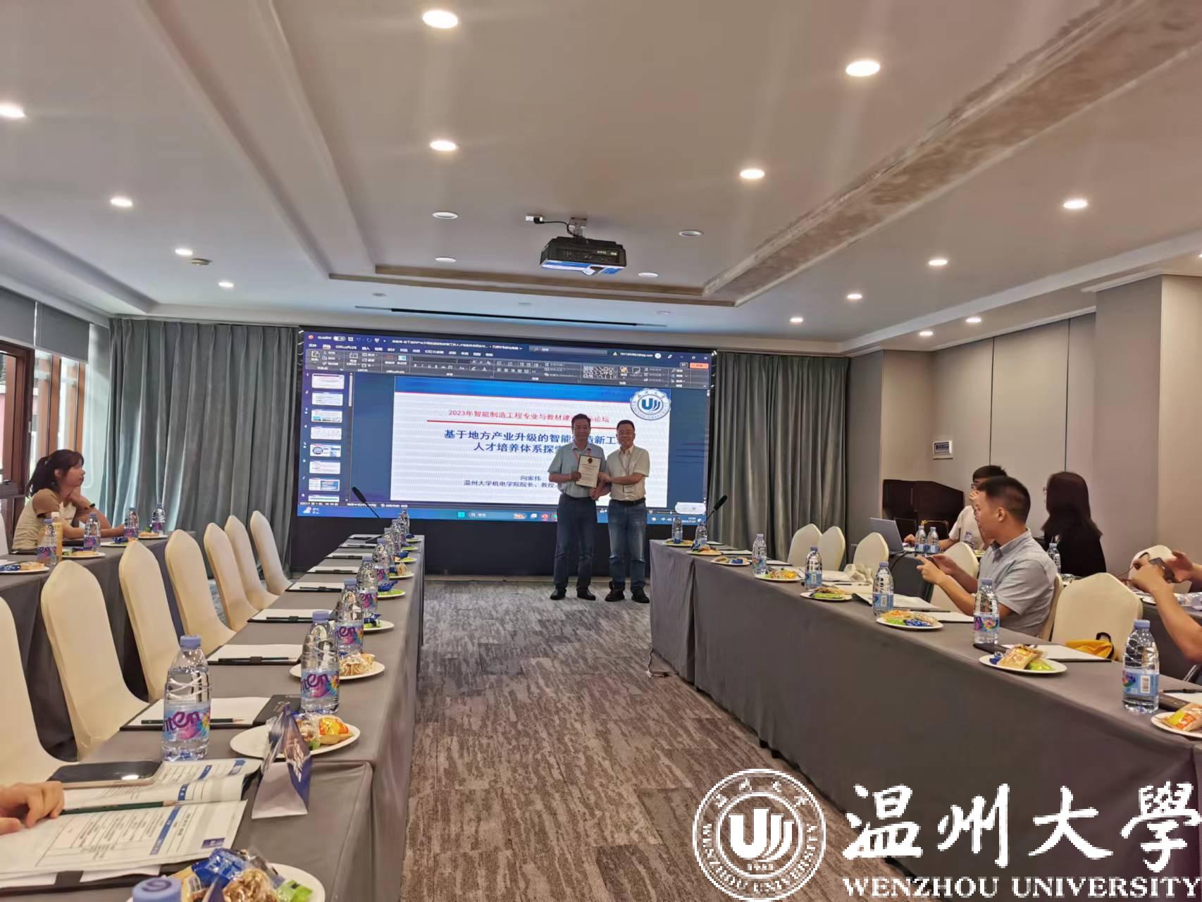 在随后召开的2023年智能制造工程专业与教材建设国际会议上,学院院长向家伟教授受邀做了“基于地方产业升级的智能制造新工科人才培养体系探索与实践”的专题报告,分析了地方产业对地方高校智能制造人才培养的需求,结合温州大学数智化机械类人才的培养实践,提出了包含跨学科课程体系、跨界融合实践模式、政产学研协同育人机制的智能制造人才培养体系和建设规划。