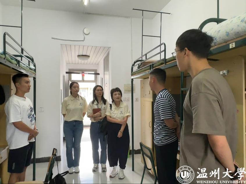 走访期间,各位领导、老师和新同学亲切交流,询问“大家从哪里来”“坐什么交通工具”“爸爸妈妈是否陪同”“都有什么兴趣爱好”“初来温州,感觉怎么样?”提醒大家来到新的环境,要尽快适应,要处理好寝室、同学关系,要明确学习目标,积极参加各类活动和比赛,注重提升自我综合能力。“一枝一叶总关情,一字一句含关心。”。同学们对领导、老师的关心表示感谢,并会尽快调整状态,融入新环境。以积极进取的心态迎接大学生活,脚踏实地,不辜负老师和家长的期望。