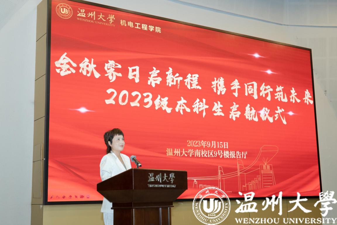 金秋九月,筑梦启航。9月15日晚,温州大学机电工程学院2023级本科生启航仪式在南校区报告厅隆重举行。学院领导、系主任、23级新生班主任、全体辅导员、23级全体本科生共同参加,仪式由学院党委副书记黄玮主持。