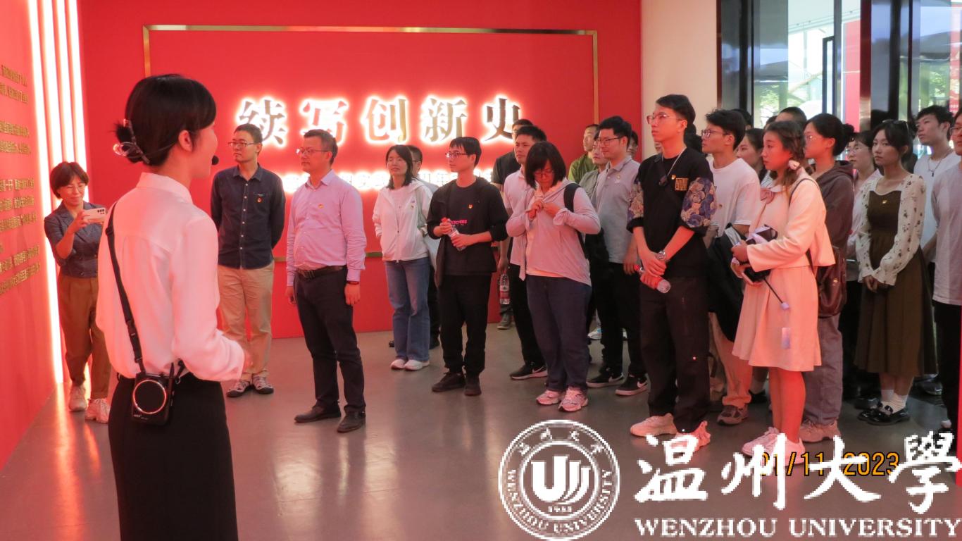 最后,师生党员们来到温州市文化馆参观学习,置身于展览现场,如同走入一条由文字、图片和实物构筑起来的时空走廊,沉浸式感受“八八战略”二十年的巨变。一张张历史图片、一件件文献实物、一段段视频资料,诉说着温州高质量发展的奋斗故事,深切感受到“八八战略”指引温州续写创新史的伟力,把发展蓝图变成现实,不断开辟实践新境界。