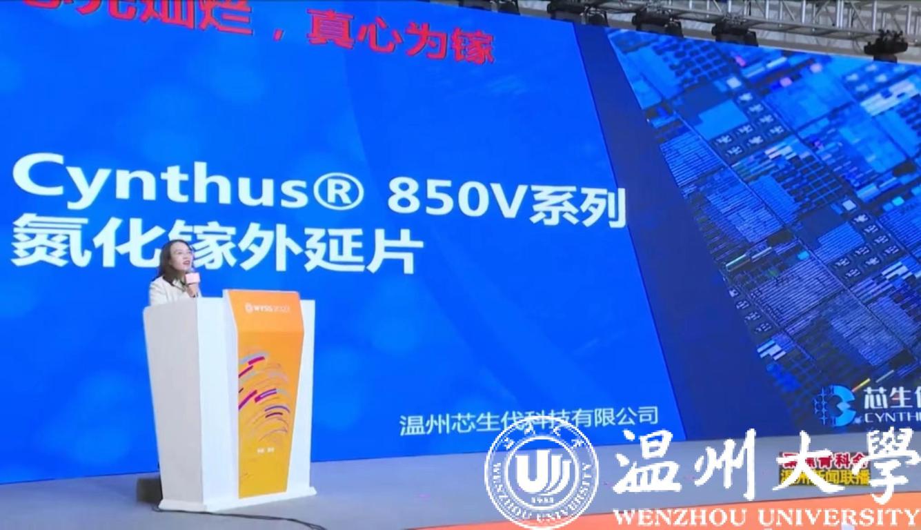 2023年11月10日,在2023世界青年科学家峰会·硬科技投融资大会上,开云体育-开云体育app下载 教师钟蓉博士作为首席科学家,代表温州芯生代科技有限公司发布了面向高电压大电流HEMT功率器件应用的850V Cynthus®系列硅基氮化镓(GaN-on-Si)外延产品,引起广泛关注。