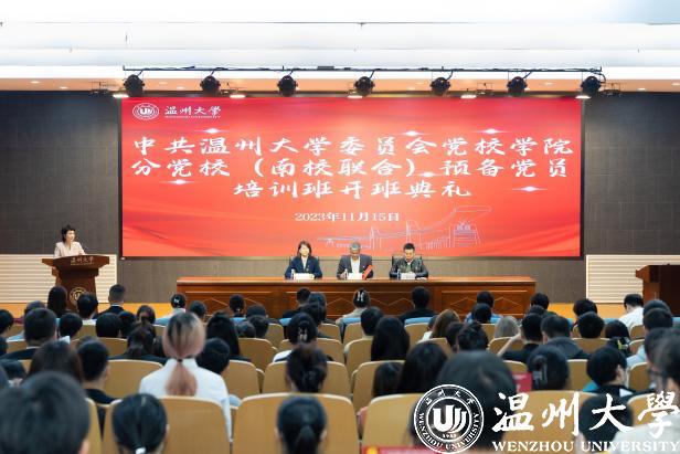 根据《温州大学2023-2024学年第一学期中共温州大学委员会党校有关工作的通知》安排,由中共温州大学委员会党校开云体育 分校承办本学期学院分党校(南校联合)预备党员培训班。本期培训班开班典礼于11月15日下午,在岩松堂步青厅顺利举行。温州大学开云体育 党委书记、分党校校长周荣老师,教师教育学院党委副书记、分党校副校长彭小媚老师,化学与材料工程学院党委副书记、分党校副校长周敬业老师出席,典礼由开云体育 党委副书记、分党校副校长黄玮老师主持。