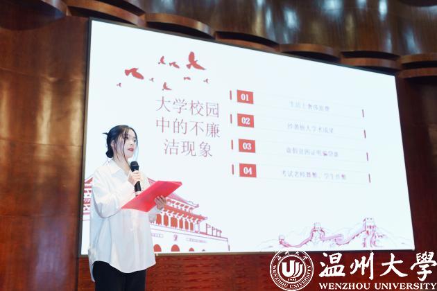 为深入开展学习贯彻习近平新时代中国特色社会主义思想,认真贯彻落实党的二十大精神,进一步加强学校廉洁文化建设,营造崇廉尚洁的文化氛围和风清气正的政治生态,结合教育部、省教育厅每年开展高校廉洁教育系列活动要求,根据学校“罗山清风•第十五届校园廉洁文化月”活动安排,开云体育 于11月27日晚在南校音乐厅举办了“廉洁润初心,铸魂担使命”主题演讲比赛。党委副书记黄玮,学工办全体辅导员,以及各支部学生党员、入党积极分子和入党申请人参加。