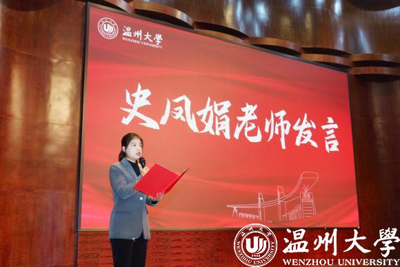 首先,史凤娟老师发言。她指出:以赛促学,以赛促练,以赛促干,今天来到现场的,都是各支部党员、入党积极分子和入党申请人,都是郑重向党组织许诺过初心的人。可是:初心易得,始终难守。习近平总书记指出:“一个人能否廉洁自律,最大的诱惑是自己,最难战胜的敌人也是自己。一个人战胜不了自己,制度设计得再缜密,也会‘法令滋彰,盗贼多有’。”希望在座的广大同志,以本次比赛为新的起点,树立起全面从严治党的政治自觉,守好“三德”,坚持自我革新,永葆清廉本色,不忘为民初心。