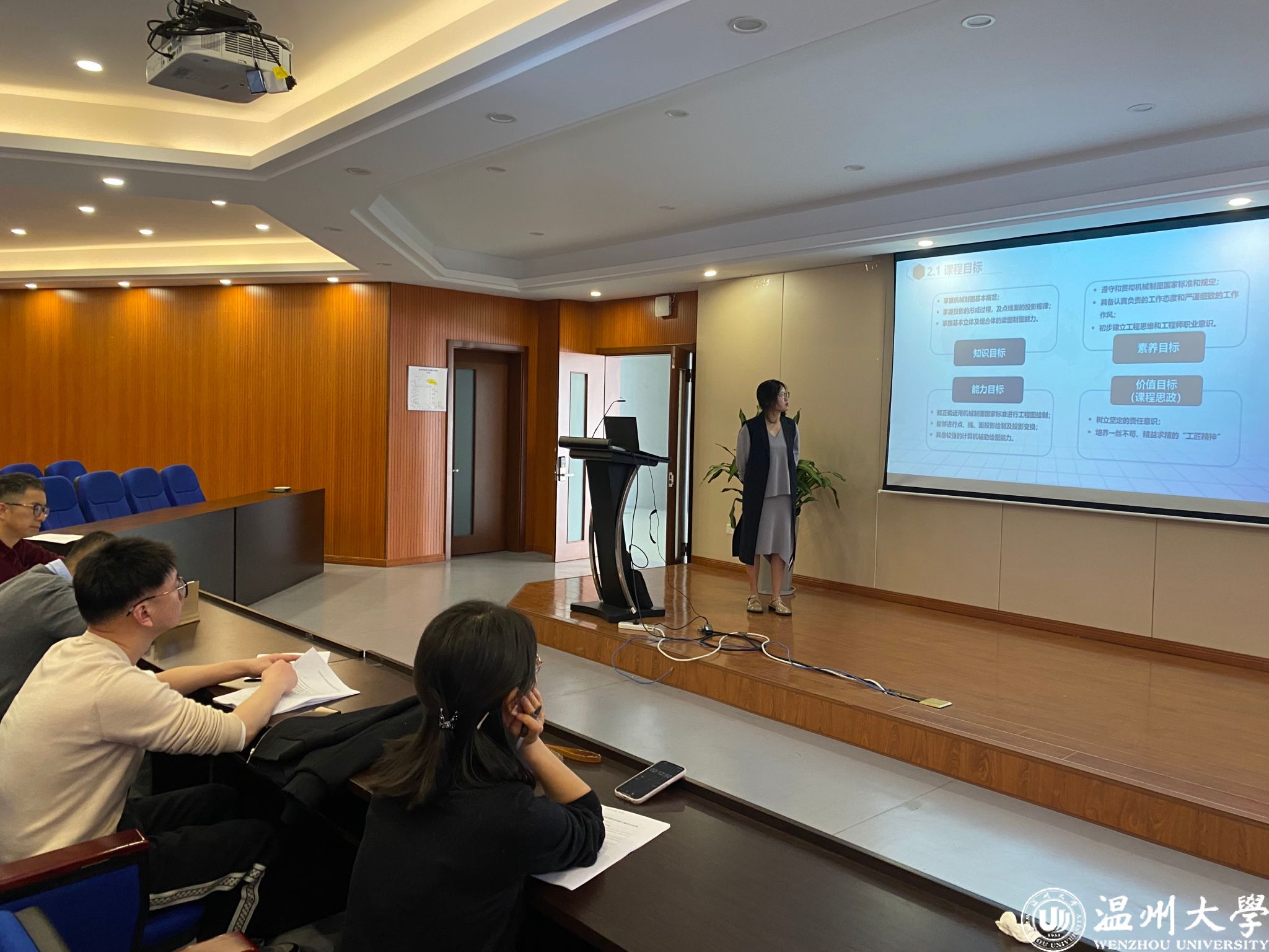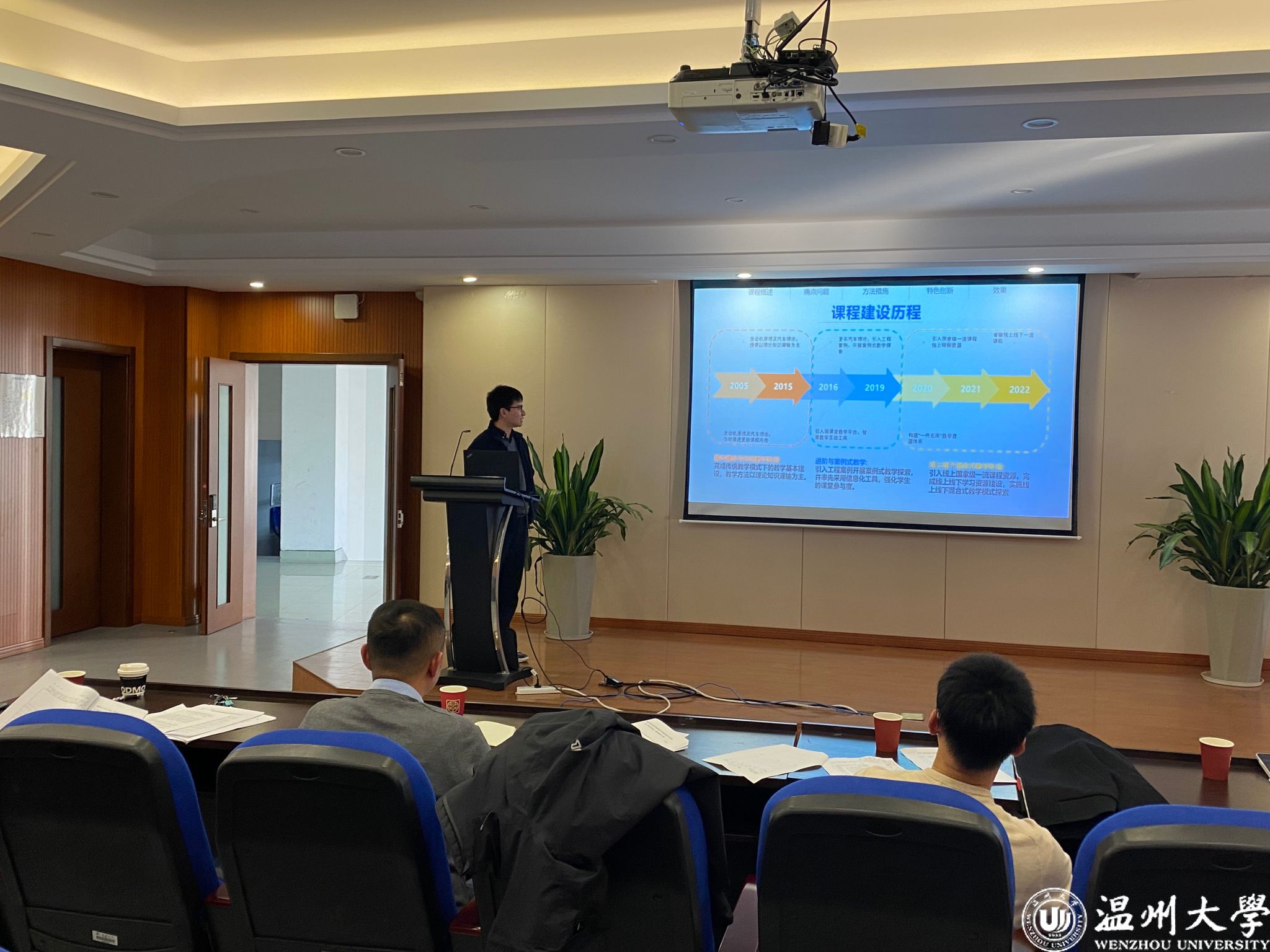 本次比赛邀请了李勇教授,陈亚绒、吴明格和张祥雷副教授为评委。各位参赛教师提交了教学创新成果报告,并依次从课程建设理念目标、课程内容、学情分析、课程思政、创新举措、考评方法、创新成效等方面进行了教学设计创新汇报。评委们对各位选手的汇报进行了肯定,并根据学校教学创新大赛的评审标准对参赛选手进行了全面点评和指导。经过评委组评审和公示,王景旭和李强老师荣获学院一等奖,于鲁川和李桂钟老师荣获学院二等奖。最终学院推荐王景旭等四位老师参加温州大学第四届教师教学创新比赛。