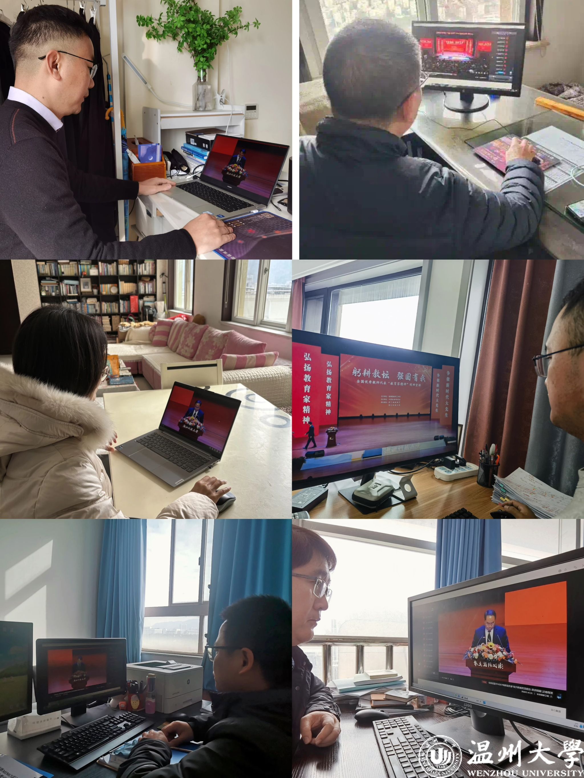 为贯彻落实习近平总书记关于弘扬教育家精神的重要指示,营造全社会学习和弘扬教育家精神的良好氛围,2024年3月3日上午,由教育部组织开展的全国优秀教师代表“教育家精神”2024年巡回宣讲浙江场在浙江科技大学举行。学院高度重视,认真组织全院教工在线观看学习。