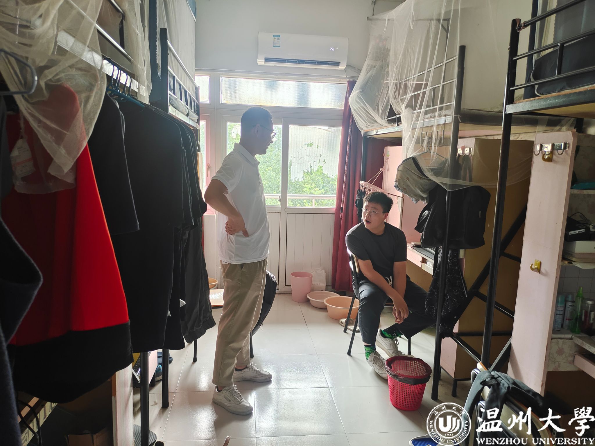 在学生科创中心和考研自习室,检查组逐一走访了留校学生,详细了解学生的留校学习、生活和科研情况,并对台风来临之前的用电、用水、设备使用安全等进行了重点说明。同时,学院领导还亲切地叮嘱留校学生要时刻关注台风动态,提高自我防护意识,减少不必要的外出,确保个人安全。