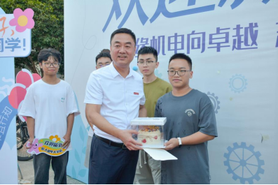 校党委书记钱强为24级机械工程(卓工)1班杨星辰同学送上18岁生日蛋糕,祝他生日快乐,希望他在温州大学快乐成长,梦想成真。杨星辰同学动情地说:“来到学校第一天,校党委书记给我过生日,真的太惊喜了!这个生日终生难忘!”
