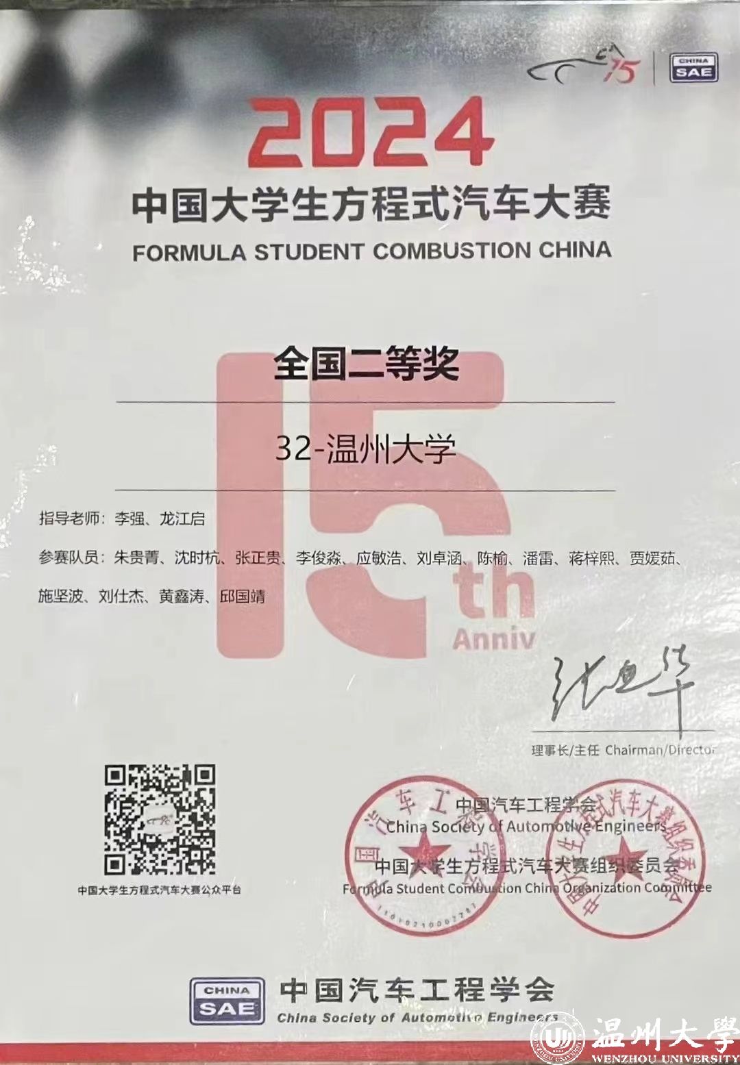这一成绩的取得离不开温州大学对科技创新与工程实践教育大力支持,离不开开云体育 及教师对疾风赛车队的支持与指导,更离不开车队成员们夜以继日努力和不辞辛劳的付出,彰显了疾风赛车队强劲的创新创业能力、专业技术实力以及团队协作合力,凸显了学院培养创新专业高素质应用型高级技术人才的成效。