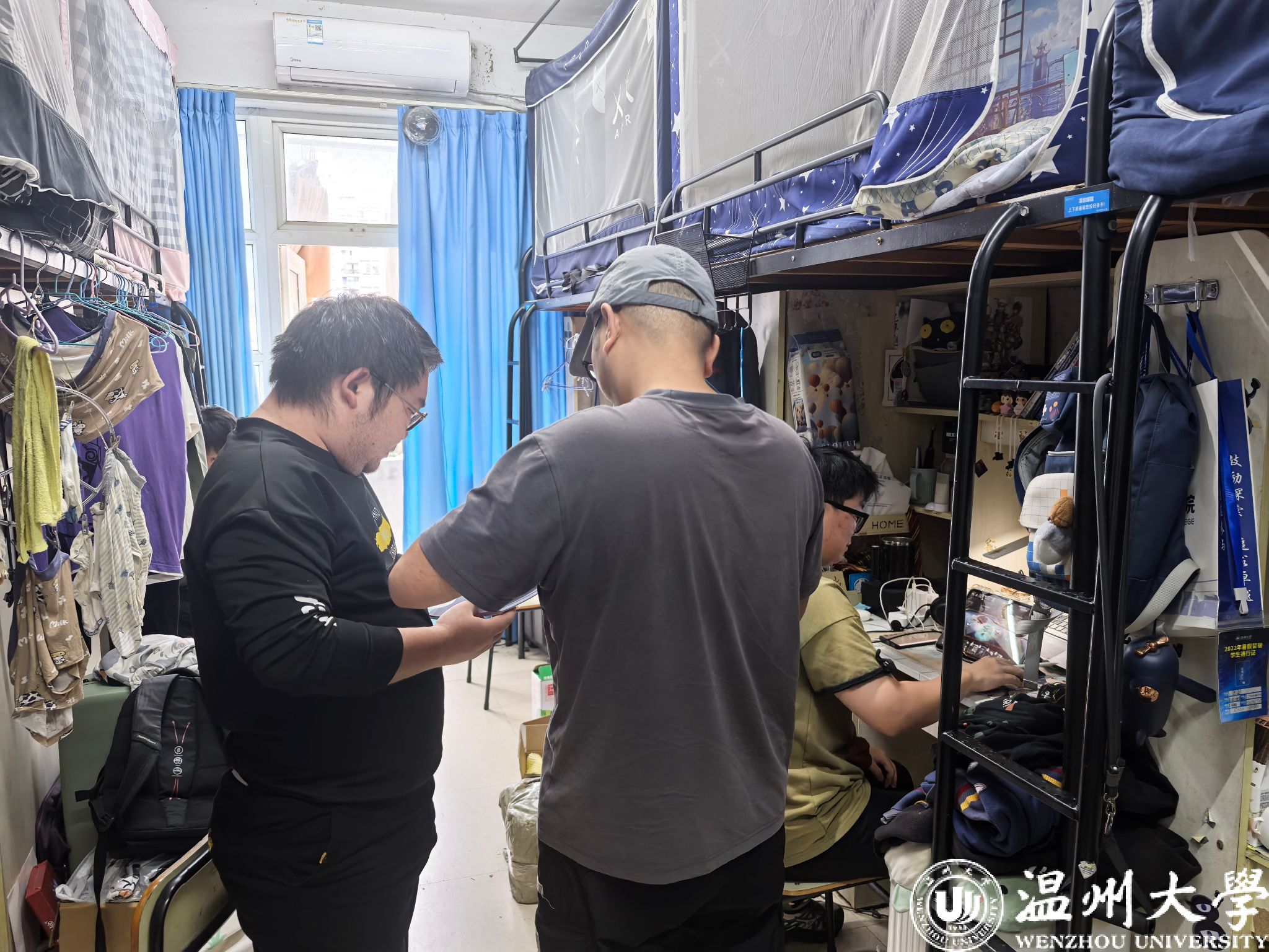 同时,在现场各负责老师与各寝室介绍校园防诈工作、提醒大家注意保护人身安全、财产安全,现场与各寝室成员签订防诈承诺书。此次检查坚持全覆盖、不走过场的原则,确保每一间宿舍都得到认真对待。