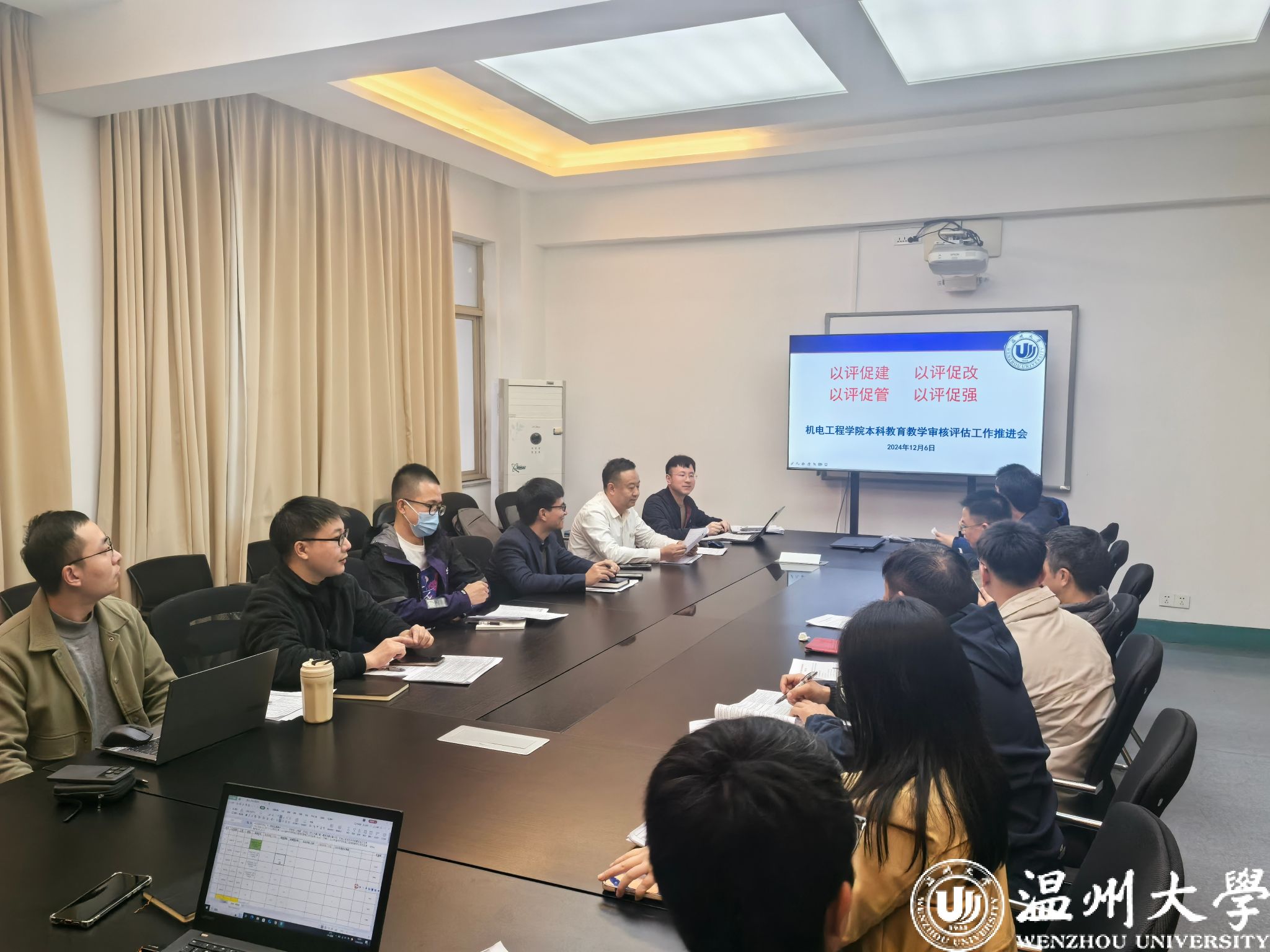 12月6日下午3点在学院C401会议室,学院召开了本科教育教学审核评估自评自建推进会,旨在落实《温州大学本科教育教学审核评估评建工作方案》的任务分工及工作进程要求。学院领导班子、专业负责人、系部主任、学院督导、各科室负责人和骨干教师等参会。本次会议由学院本科教育教学评建工作小组副组长、副院长黄沈权主持。