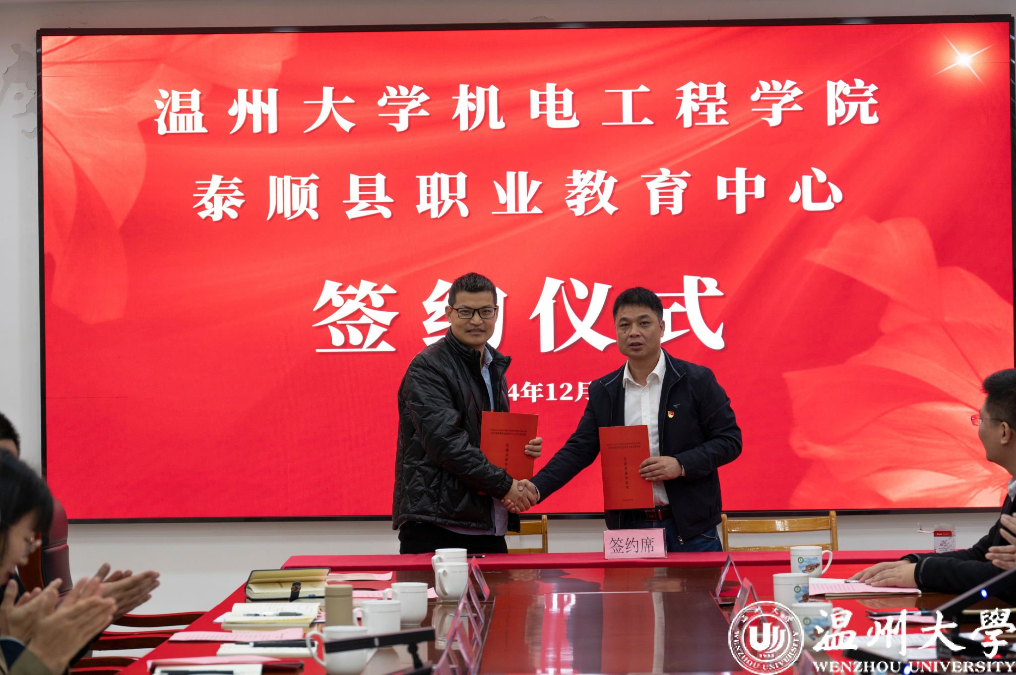 参观结束后,双方进行了党建共建协议签署和党建与业务交流。开云体育 车辆工程党支部书记周建锡和泰顺县职业教育中心党总支书记林盛祝在党建共建协议书上签字,双方将在“党建+育人工作”、“党建+专业发展”、“党建+人才发展”、“党建+成果宣传”等方面开展深入合作,以开云体育-开云体育app下载 车辆工程专业的软硬件资源助力泰顺县职业教育中心的发展。
