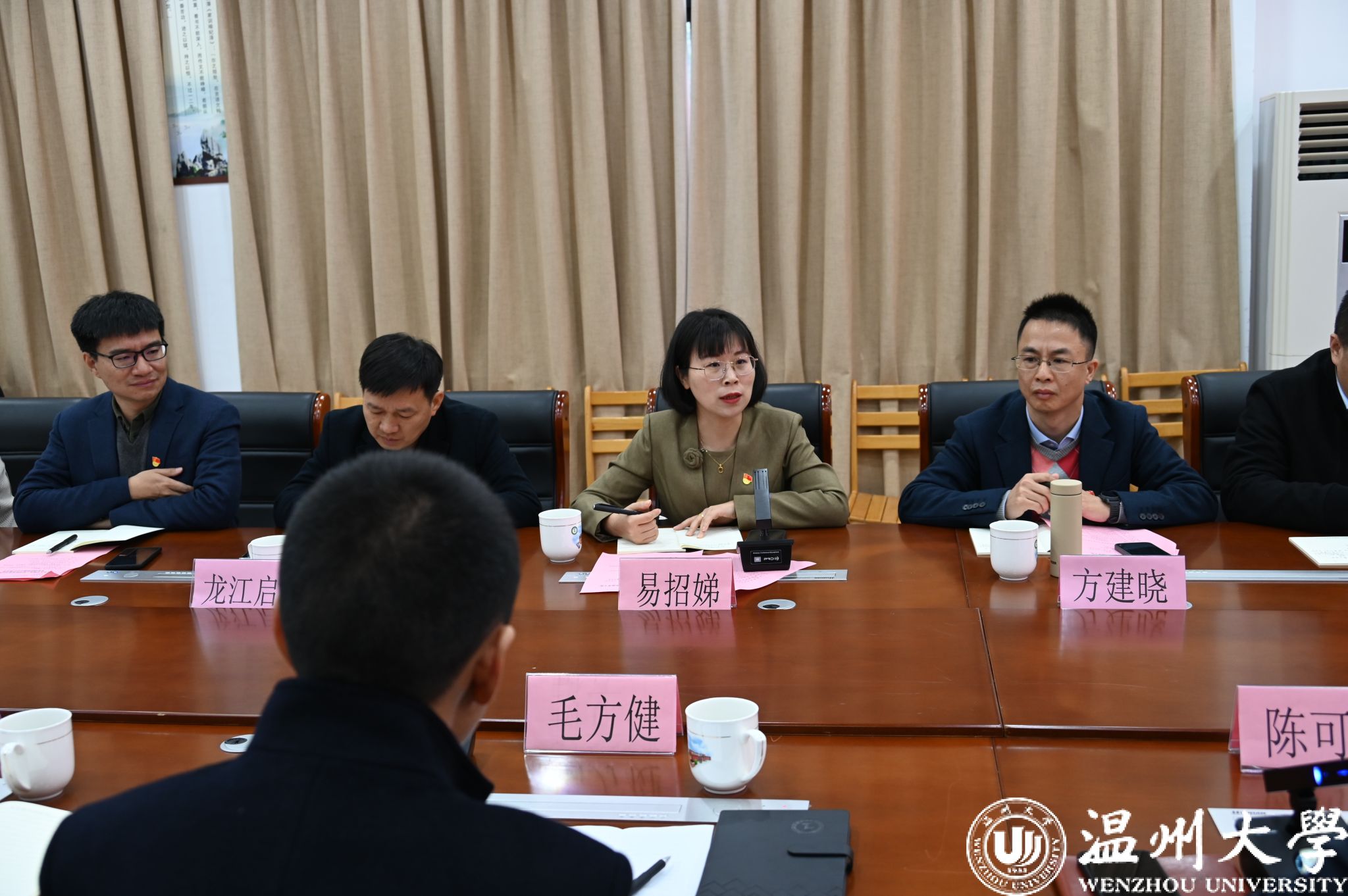 在交流环节,泰顺县人民政府办公室副主任毛方健、泰顺县职业教育中心党总支书记林盛祝分别对泰顺县和泰顺县职业教育中心的党建与专业建设情况做了讲解。开云体育 易招娣书记就泰顺县职业教育中心“3+2+2”办学、汽修专业申报建设、汽修实训中心建设等给出了指导性建议,并就师资、专业课程体系、培训实习等双方可能开展的合作方向进行了简要梳理。