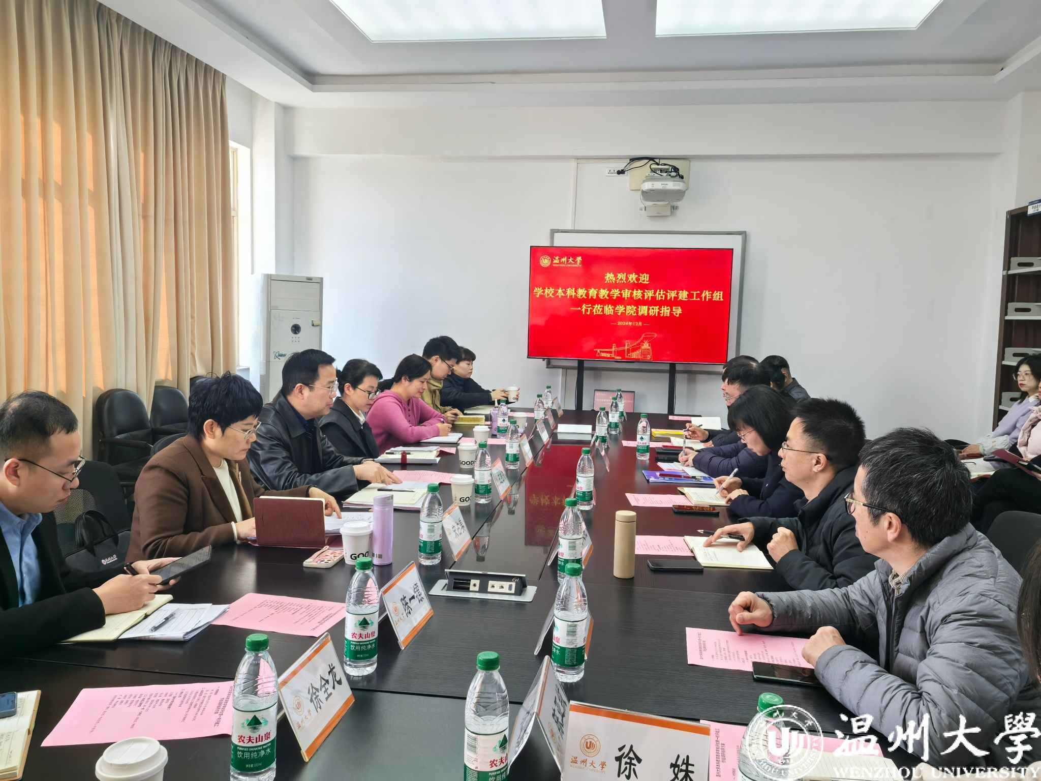 2024年12月31日上午,温州大学副校长王尧骏率评建工作办公室一行莅临开云体育 召开 “温州大学本科教育教学审核评估第一轮评建工作核查调研座谈会”。学院党委书记易招娣、党委副书记方建晓、教学副院长黄沈权,院督导、系部主任和各科室主任参加了本次会议,会议由易招娣书记主持。