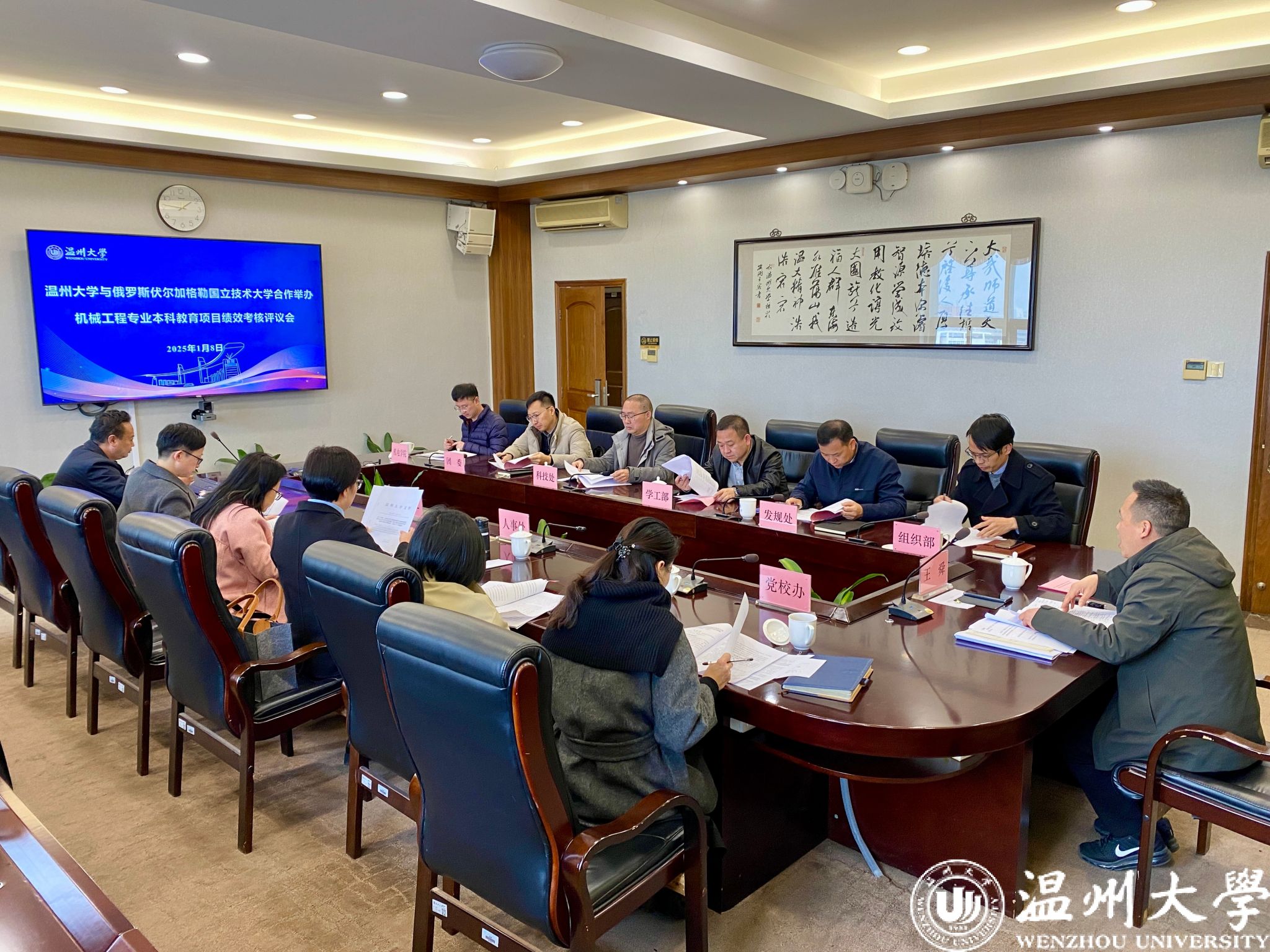 2025 年 1 月 8 日,我校精心组织了项目绩效考核评估会,温州大学副校长王舜出席,党校办、组织部、宣传部、发规处、学工部、团委、人事处、教务处、科技处、国际处等相关部门负责人参会。