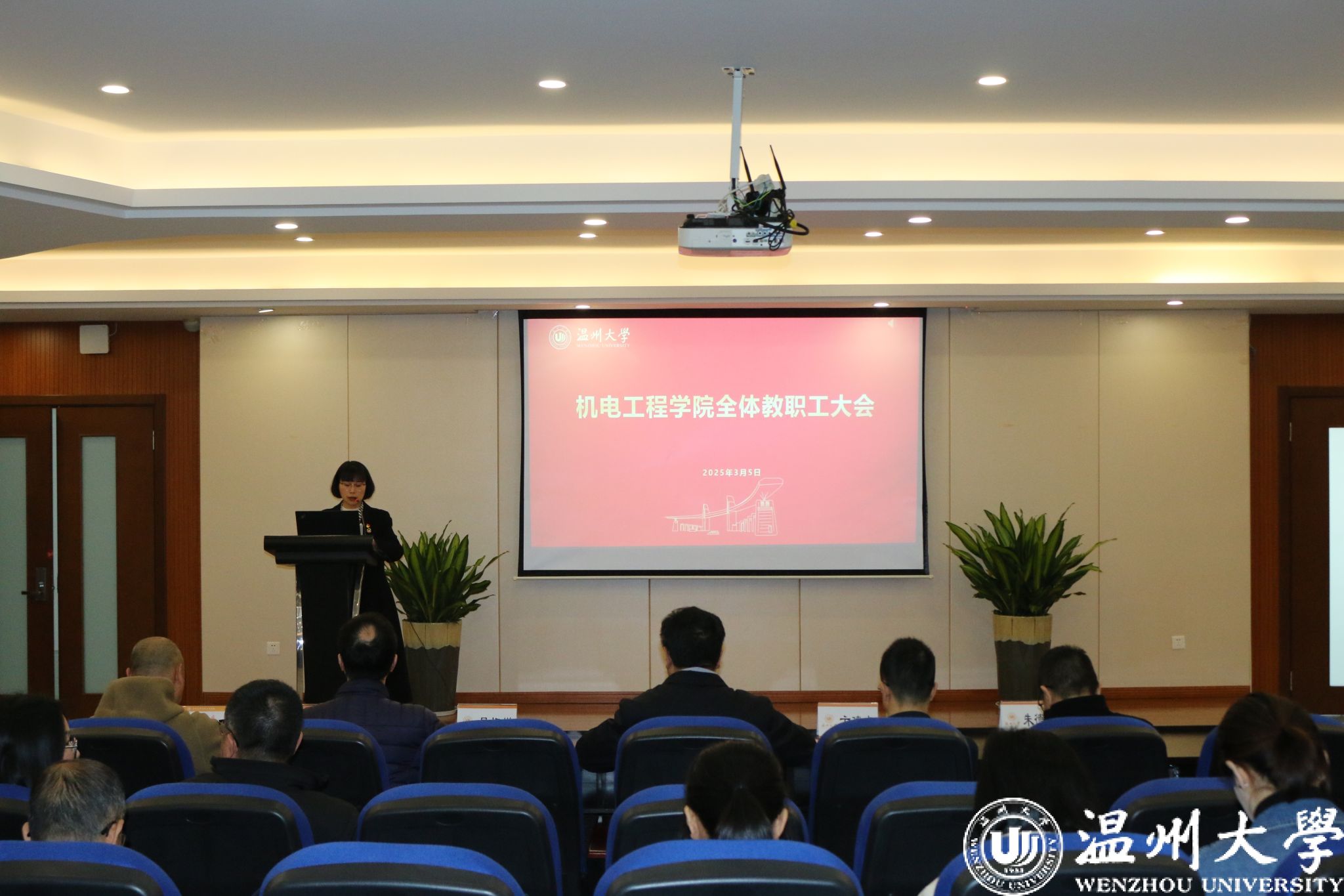 2025 年3月5日下午,开云体育 在6B309会议室召开全体教职工大会暨政治理论学习会。学院全体教职工以及温州大学激光研究院、平阳研究院、苍南研究院领导班子参会,会议由学院党委书记易招娣主持。
