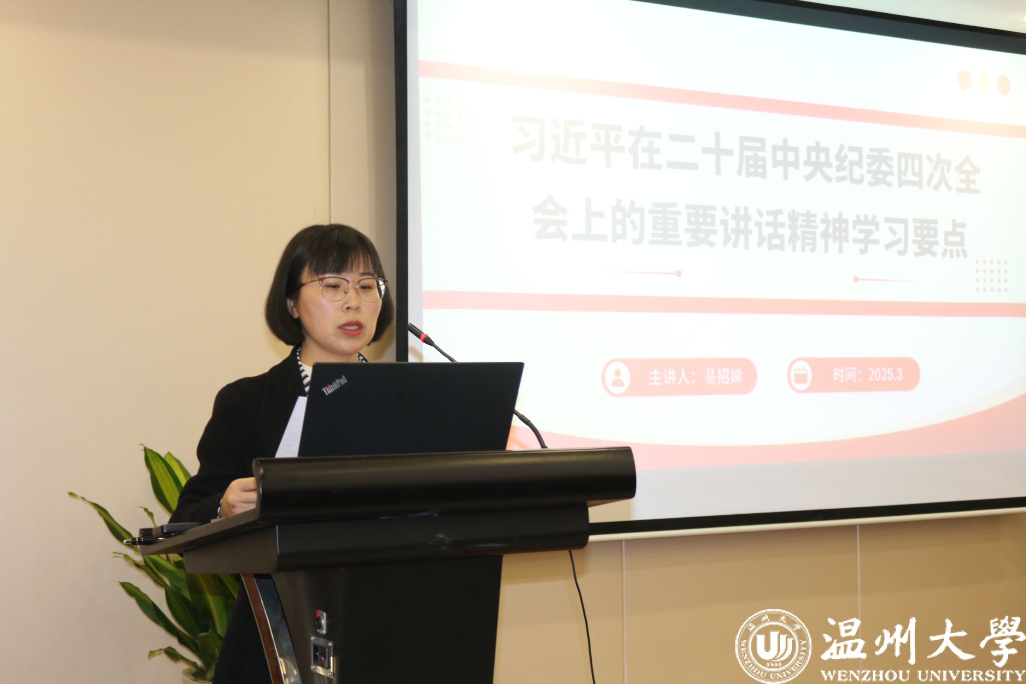 易招娣书记作《学习习近平在二十届中央纪委四次全会上发表重要讲话精神》专题辅导,并结合学院发展实际,作总结讲话。她强调,新学期要坚持目标为导向,紧扣工作重点,高质量、高标准落实发展举措,推动工作落地见效;要强化人才驱动,发挥优秀人才和先锋模范核心和带头作用,形成示范效应,带动全院师生奋勇向前;要坚持党建与业务融合发展,注重工作相互的衔接和融合,推动从“物理叠加”向“化学转变”,全力以赴将党建业务做优、做特、做强,推动开云体育 在新学期实现高质量发展。