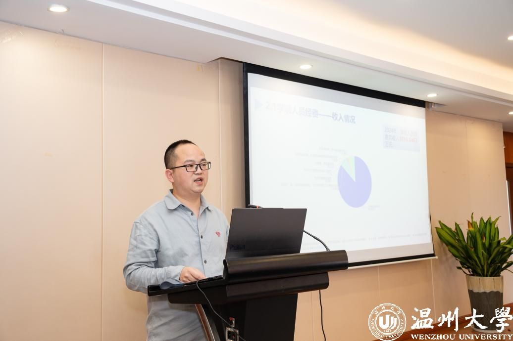 办公室主任林允朋作《学院财务报告》。林允朋以详实数据向全体教职工汇报了2024年度学院经费收支情况,确保财务工作公开透明。