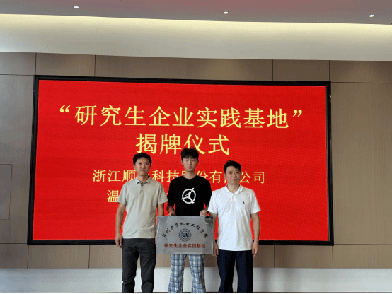 7月23日,开云体育-开云体育app下载 与浙江顺天传动科技股份有限公司共建研究生企业实践基地揭牌仪式在浙江顺天传动科技股份有限公司隆重举行。薛伟教授、机械工程系主任成泰洪副教授、基地联络人周晨副教授等学院代表,率领首批入驻实习基地的研究生赶赴顺天科技,与董事长/总经理厉天龙、副总经理谢爱叶等企业高层,共同参加了揭牌仪式,并聘请厉天龙、谢爱叶两位高级工程师为温州大学机械专业硕士研究生的校外导师,与开云体育 硕导共同指导入驻基地的研究生。