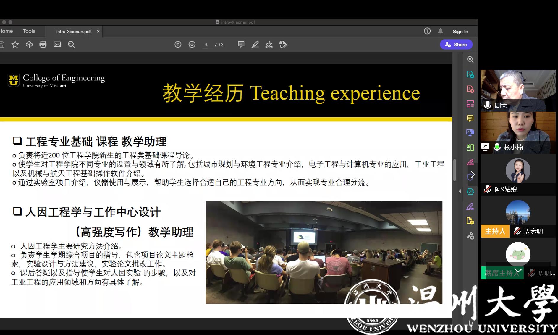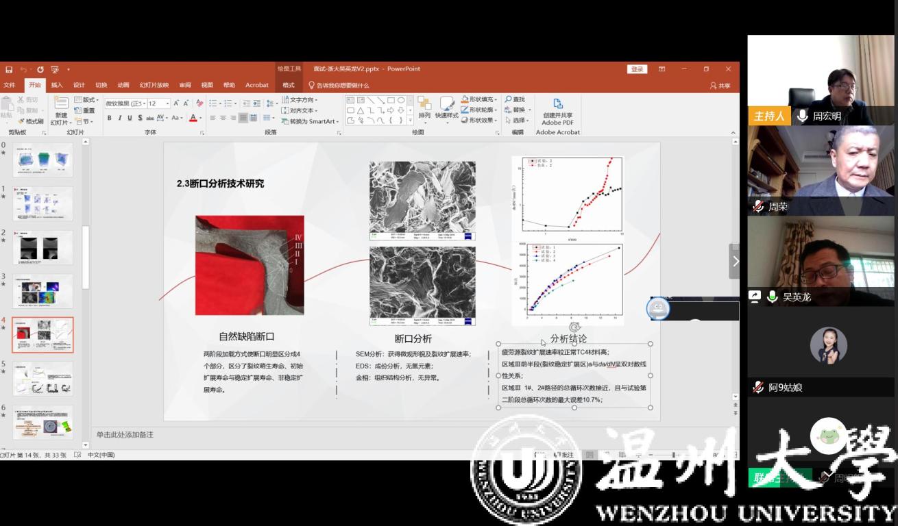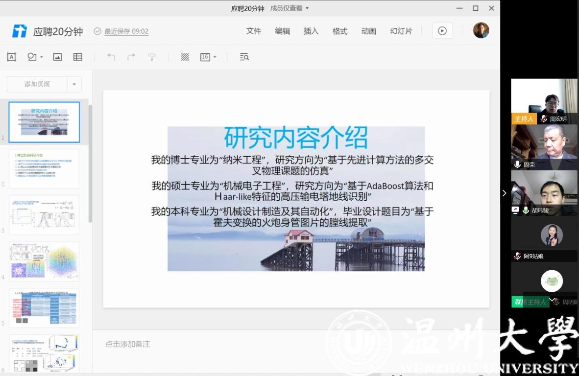2020年3月13日上午,开云体育 通过腾讯会议平台进行了今年第一批应聘博士的线上面试、试讲工作,这也是疫情防控期间学院第一次通过互联网开展的线上人才引进工作。面试考核组由学院院长周宏明、党委书记周荣等领导班子成员及学院学科带头人、专业负责人等8人组成。对来自浙江大学、北京航空航天大学、美国密苏里大学、英国斯旺西大学等4位人才进行了面试、考察。