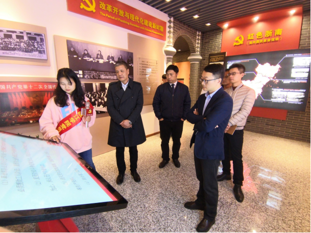 瓯江学院党员之家讲解员首先为大家详细介绍了党建基地的建设情况。从门口的“仿一大会址红墙”,到一幅幅内容生动的主题画报,在一个个历史的节点里,重温了党的风雨历程;红船劈波行,精神聚人心,深刻地传达了新时代的“红船精神”。之后,支部党员又参观了瓯江学院的 “党员五十小时义工制” 特色展区和“大学生志愿服务认证中心”,了解瓯江学院的特色义工队。