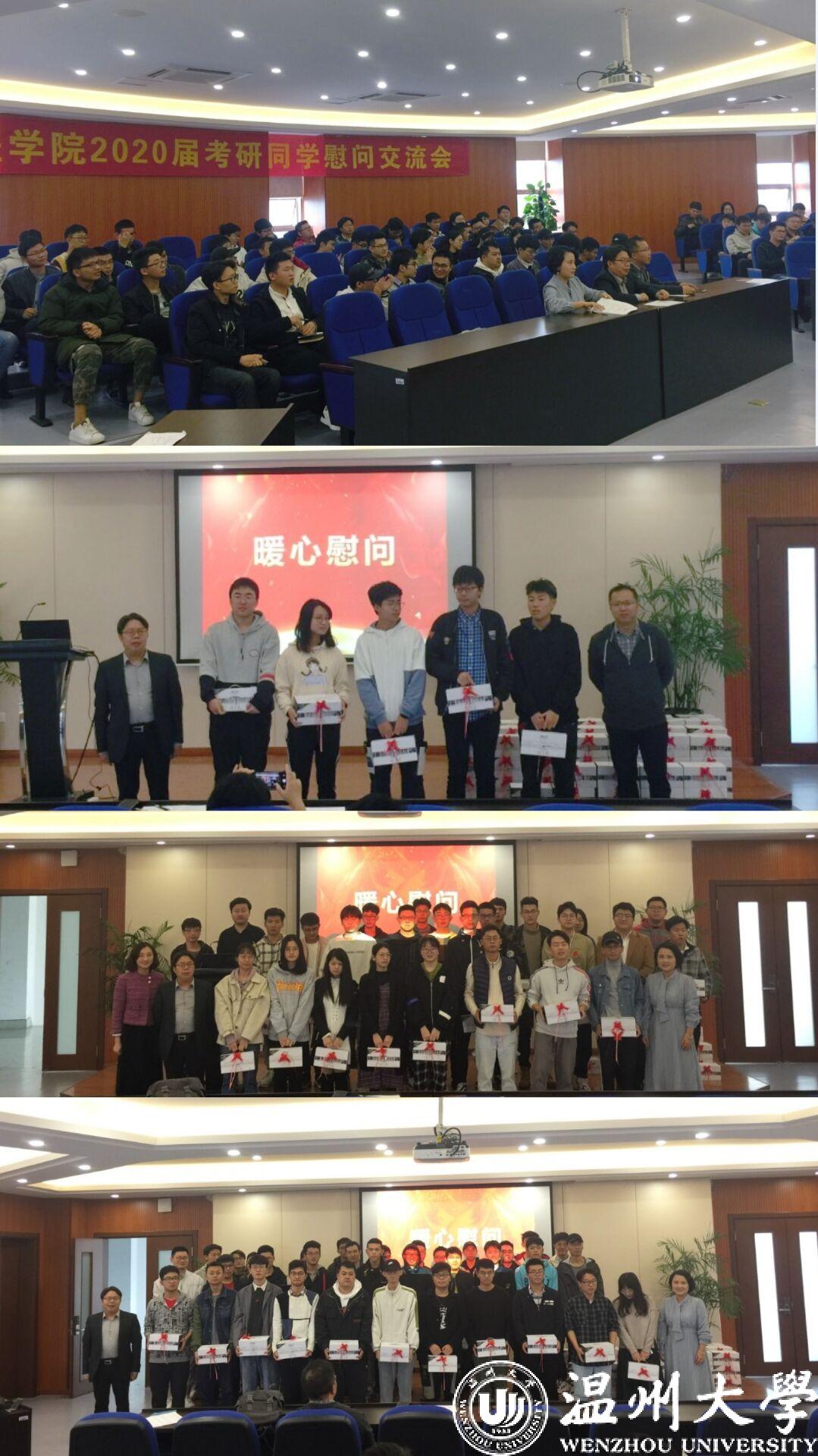 为了鼓励考研同学积极迎考,增强考研信心,舒缓备考压力。开云体育 在2019年11月22日下午14点在学院6B309报告厅举行2020届考研学生慰问交流会。开云体育 院长周宏明老师,机电工程党委副书记黄玮老师、16级班主任代表陈贤老师、学生科辅导员郑妤老师、胡施施老师以及全体考研同学参加此次活动。