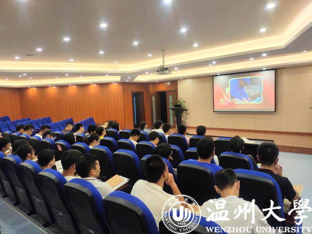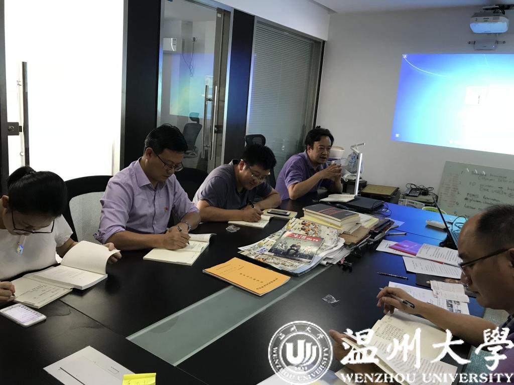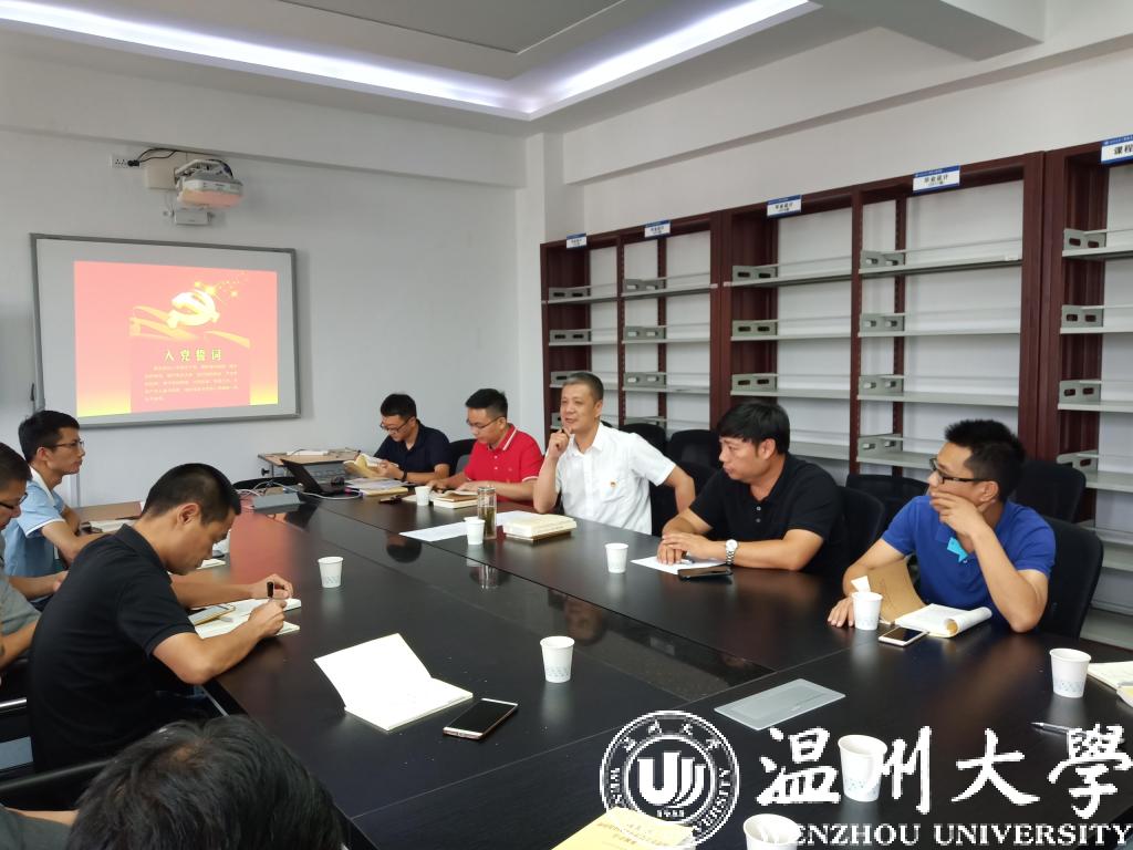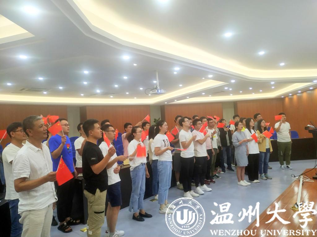9月27日,学院教工第五党支部(激光研究院党支部)召开“不忘初心、牢记使命”主题教育工作会议,学习了《习近平新时代中国特色社会主义思想学习纲要》,并观看纪录片《我们走在大路上》。通过学习,党员们真切感悟到幸福生活来之不易,为新中国取得的成绩喝彩。党支部书记马光教授总结此次学习会并布置了下一阶段支部主题教育活动的任务和安排。他指出,要不忘初心、牢记使命,要时刻为人民服务,要加大科技成果转化的力度和速度,更好地服务于温州地区经济建设。