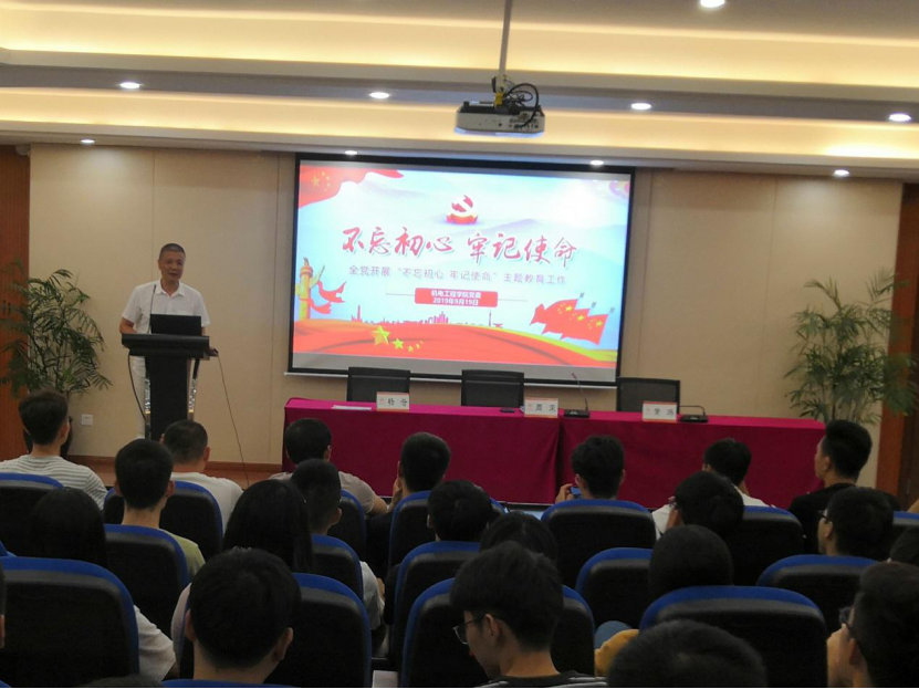 9月19日下午,开云体育 党委在6B309学术报告厅召开“不忘初心、牢记使命”主题教育工作会议,学院党委书记周荣和副书记黄玮作专题辅导报告,学院研究生、本科生党员参加会议。