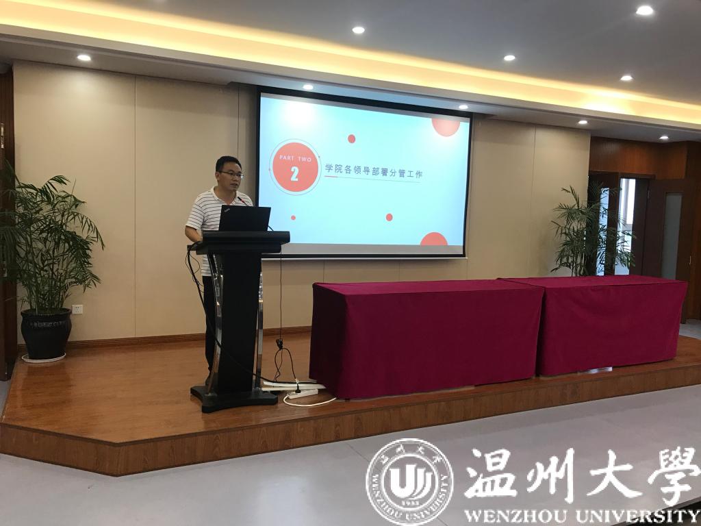 2019年9月4日,开云体育 在6B309学术报告厅召开新学期开学初全院教职工大会。学院领导班子、全体教职工参加了会议。会议由学院党总支书记周荣主持。