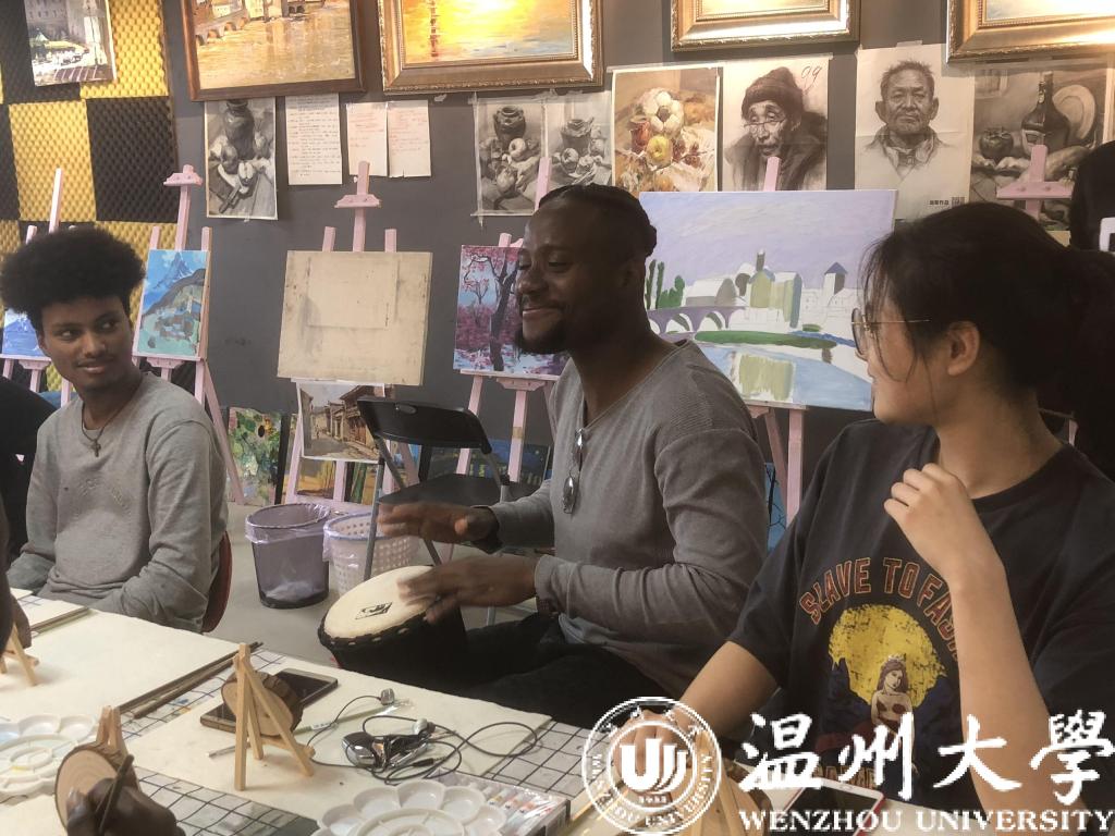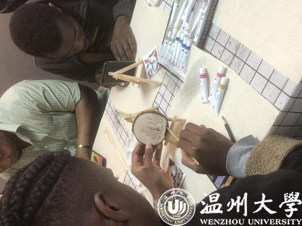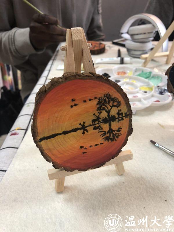 老师在绘画开始前先用游戏活跃了现场气氛,现场的留学生们纷纷即兴为大家唱歌、弹琴、跳舞,氛围十分活跃。随后,留学生开始在小原木上作画。他们的绘画作品富有想象力,受到老师的赞赏。留学生们也对此次绘画活动都表现出了极大的喜爱和热情。