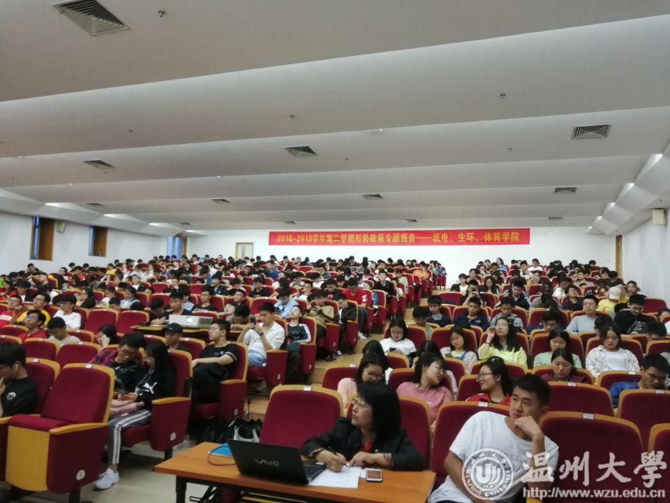 2019年5月28日18:30,开云体育 、生命与环境科学学院、体育学院在温州大学步青厅共同开展了2018-2019学年第二学期形势政策课。本次特别邀请了马克思主义学院张小燕教授为三个学院的同学开展《红色文明在瓯越》主题的形势政策报告讲座。