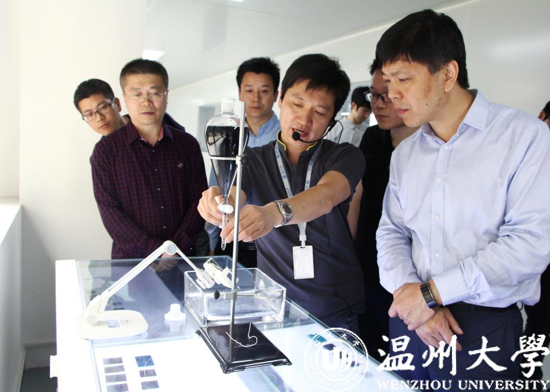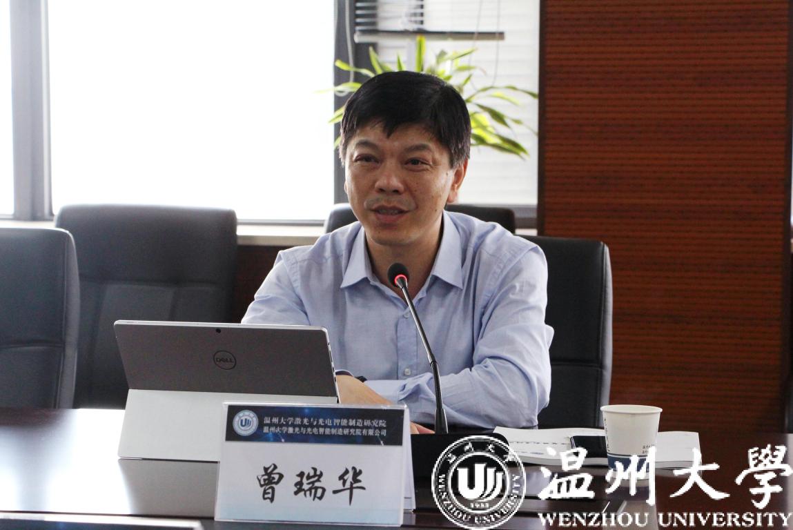 2019年5月16日上午,瓯海区区委副书记、区长曾瑞华率有关部门负责人莅临温州大学激光与光电智能制造研究院调研工作。温州大学科技处副处长卢立珏、地方合作办副主任熊琳陪同参观。