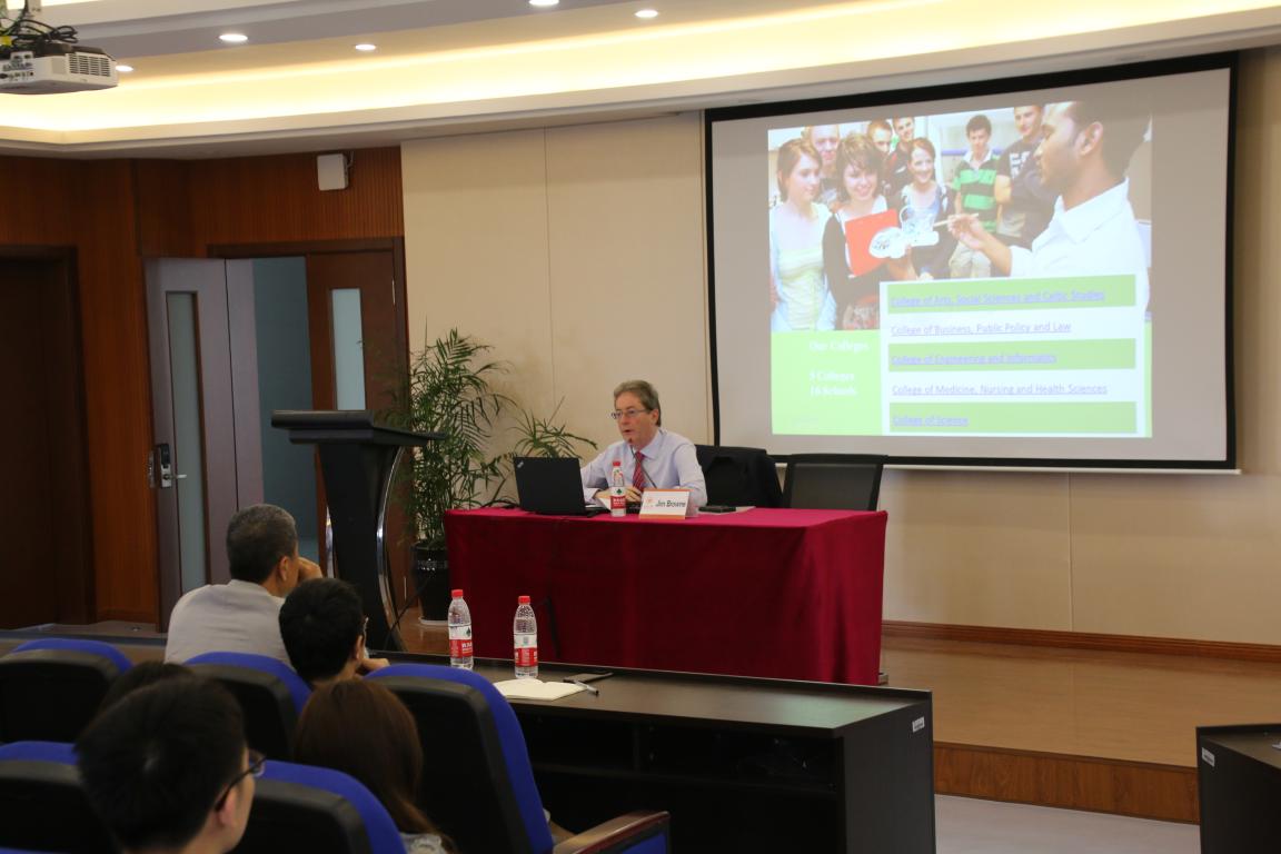 2019年5月14日上午,开云体育 在6B309会议室举办工程教师教育培训,爱尔兰工程院主席Browne James Joseph应邀作了题为《工业4.0背景下的工程师培养的课程、教育技术和学习模式》的专题讲座。开云体育 院长周宏明、党总支书记周荣,学校各学院教师代表及开云体育 全体研究生参加。