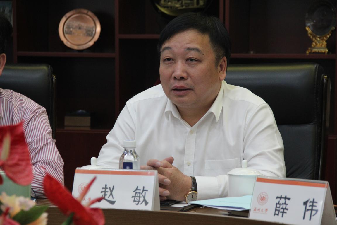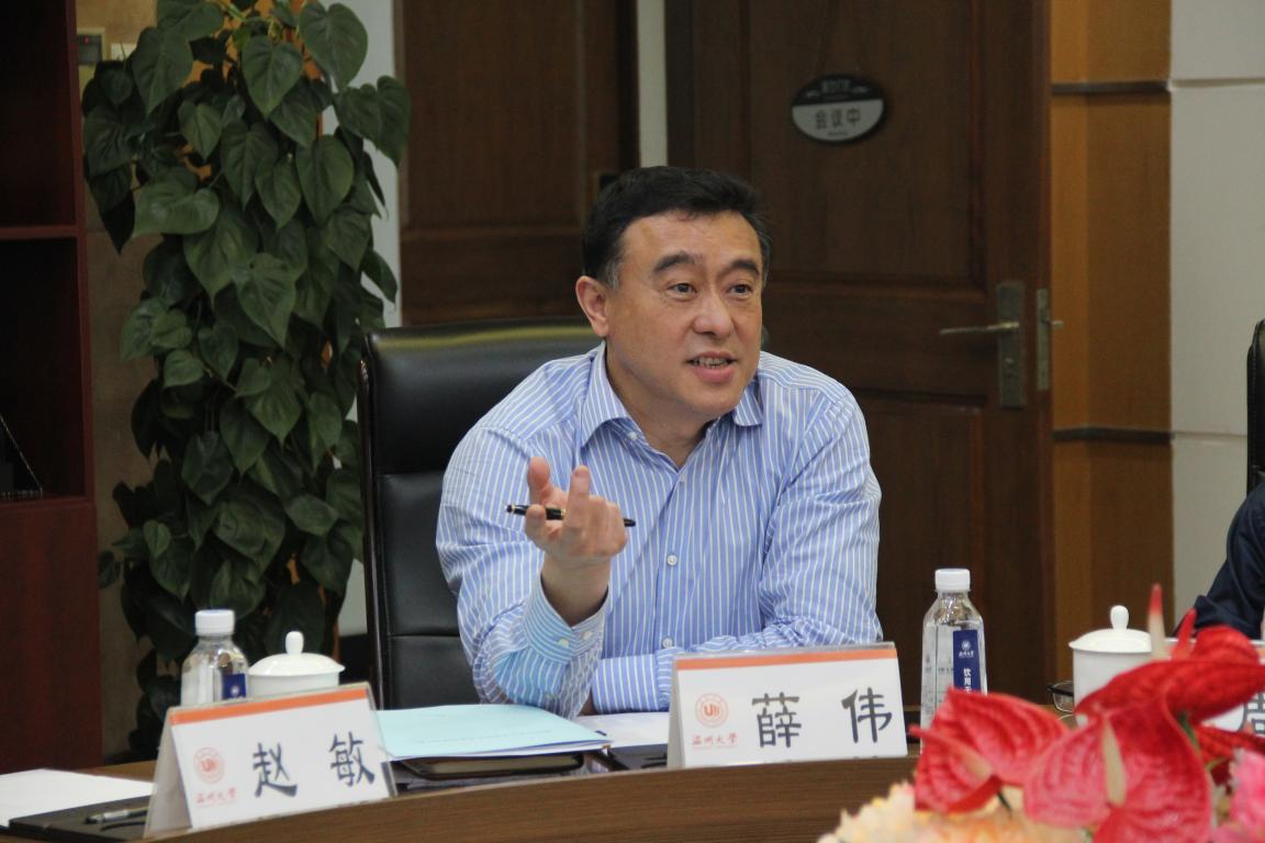 薛伟副校长对陈雄处长一行的到来表示热烈欢迎,并介绍了温州大学的发展历程、人才培养目标、不同学科的办学特色及其优势,以及近年来温州大学在学科建设、项目研究、工程教育、创新创业教育等方面取得的成绩。