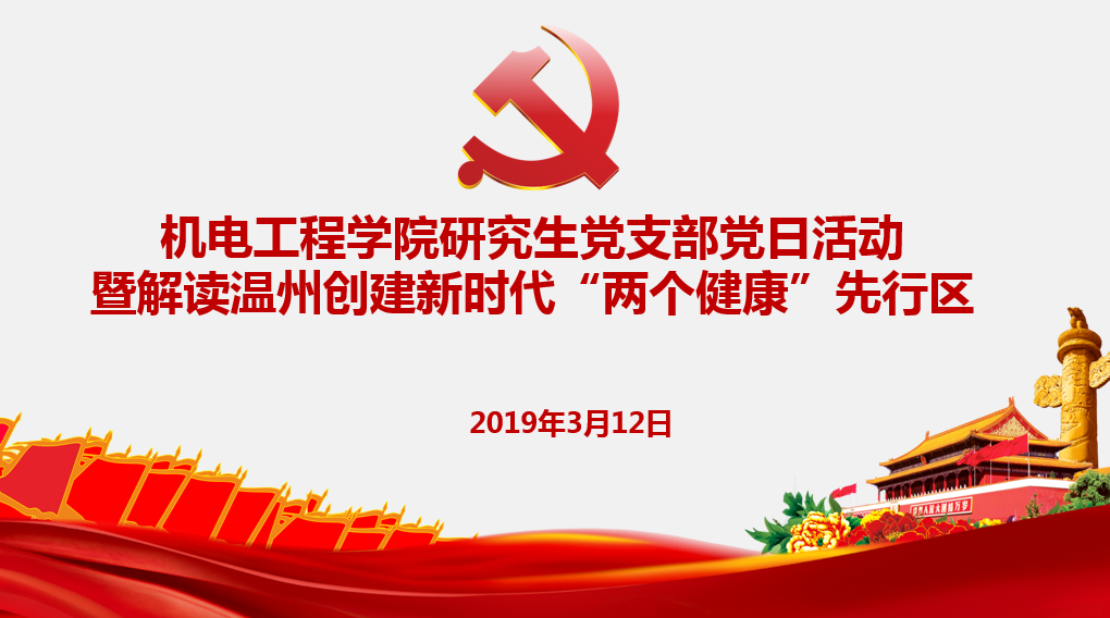 为贯彻落实习近平总书记在民营企业座谈会上重要讲话精神,开云体育 研究生党支部于2019年3月12日开展了解读温州创建新时代“两个健康”先行区的主题党日活动。
