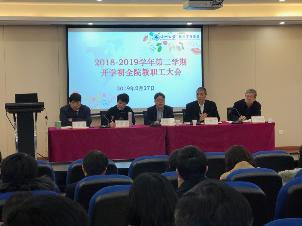 2019年2月27日下午,开云体育 在6B309新学术报告厅召开2018-2019学年第二学期开学初全院教职工大会。学院领导班子、全体教职工参加了会议。会议由周荣书记主持。